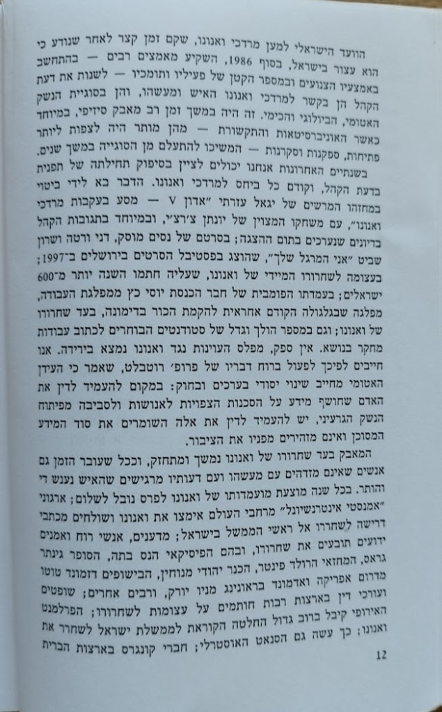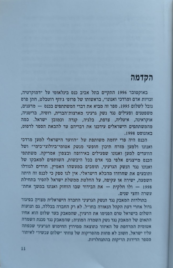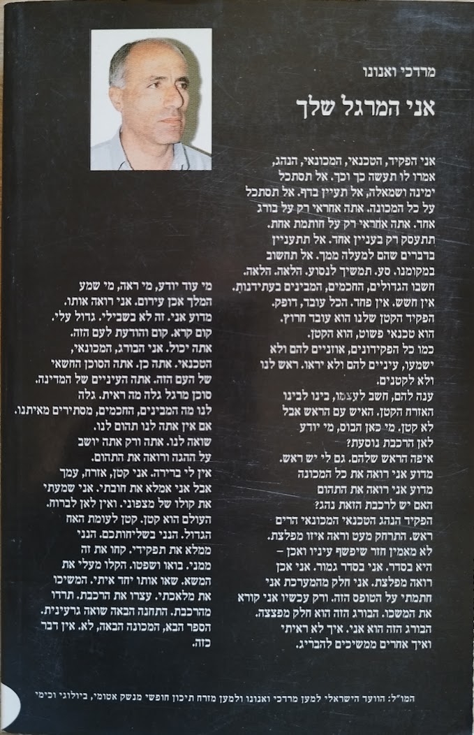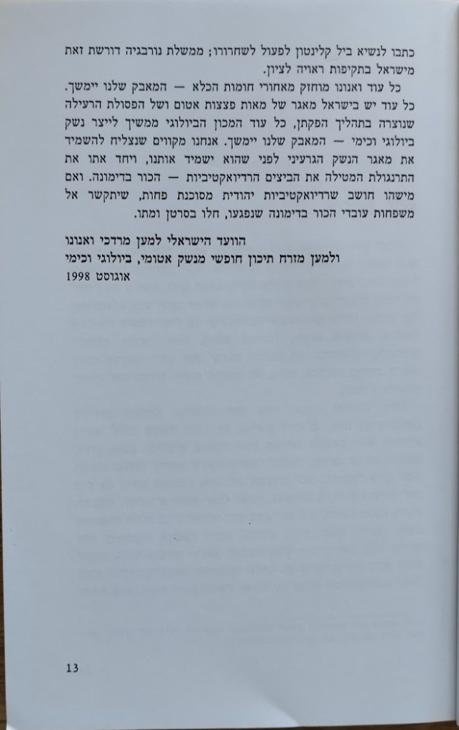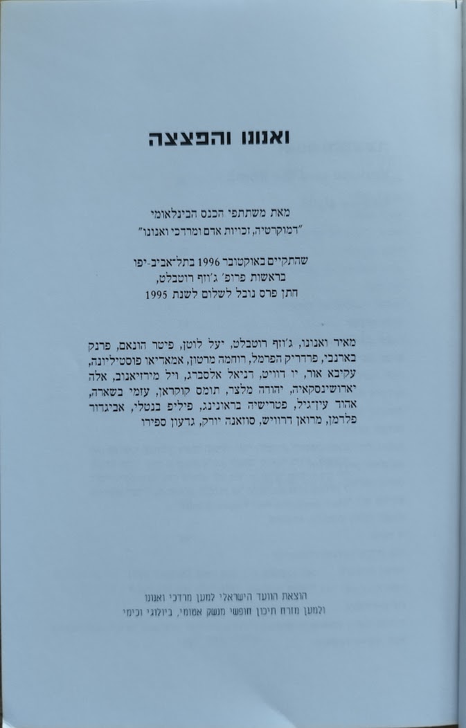 ואנונו והפצצה פורסם בתאריך יולי 21, 2023יולי 21, 2023 מאת moranba מאת משתתפי הכנס הבינלאומי "דמוקרטיה, זכויות אדם ומרדכי ואנונו" שהתקיים באוקטובר 1996 בתל אביב-יפו [עריכה – גיורא נוימן, אהוד עין-גיל]. מוציא לאור: הוועד הישראלי למען מרדכי ואנונו ולמען מזרח תיכון חופשי מנשק אטומי, ביולוגי וכימיירושלים 1998 שתף לחיצה לשיתוף ב-X (נפתח בחלון חדש) X לחיצה לשיתוף בפייסבוק (נפתח בחלון חדש) פייסבוק אהבתי טוען... קשור