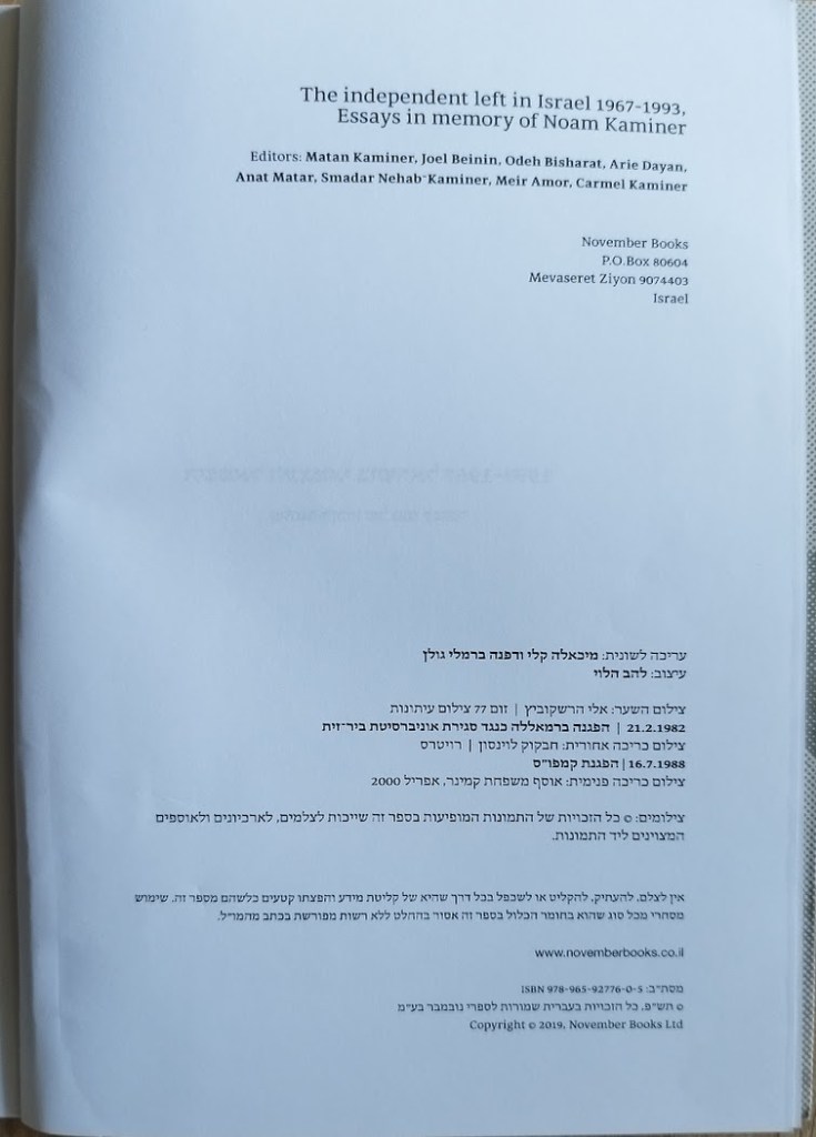 עורכים: מתן קמינר, ג'ואל ביינין, עודה בשאראת, אריה דיין, ענת מטר, סמדר נהב-קמינר, מאיר עמור, כרמל קמינר