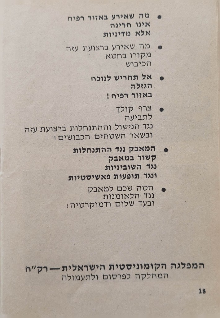 הגזלה ברפיח | ספר שחור פורסם בתאריך נובמבר 12, 2023נובמבר 25, 2024 מאת moranba המפלגה הקומוניסטית הישראלית – רק"ח | המחלקה לפרסום ותעמולה | דפוס אורלי | תל אביב | אפריל 1972 שתף לחיצה לשיתוף ב-X (נפתח בחלון חדש) X לחיצה לשיתוף בפייסבוק (נפתח בחלון חדש) פייסבוק אהבתי טוען... קשור