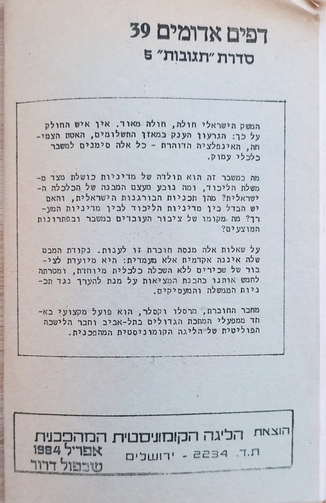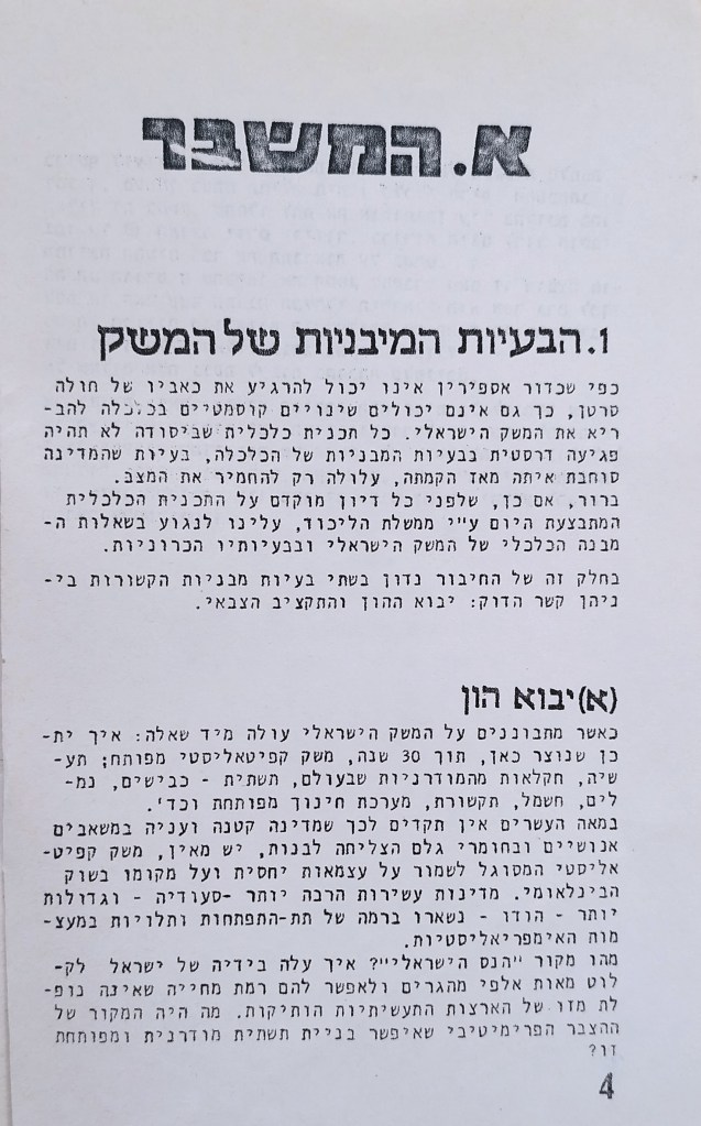 המשבר המבני של המשק הישראלי פורסם בתאריך דצמבר 20, 2023דצמבר 20, 2023 מאת erantorbiner מרסלו וקסלר דפים אדומים 39. אפריל 1984 שתף לחיצה לשיתוף ב-X (נפתח בחלון חדש) X לחיצה לשיתוף בפייסבוק (נפתח בחלון חדש) פייסבוק אהבתי טוען... קשור