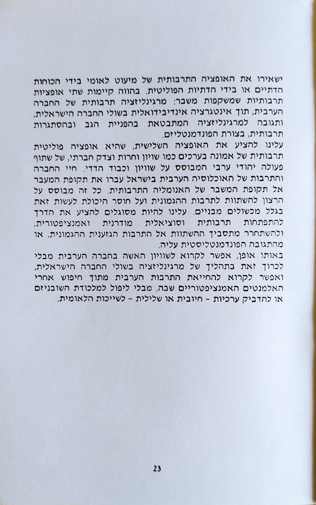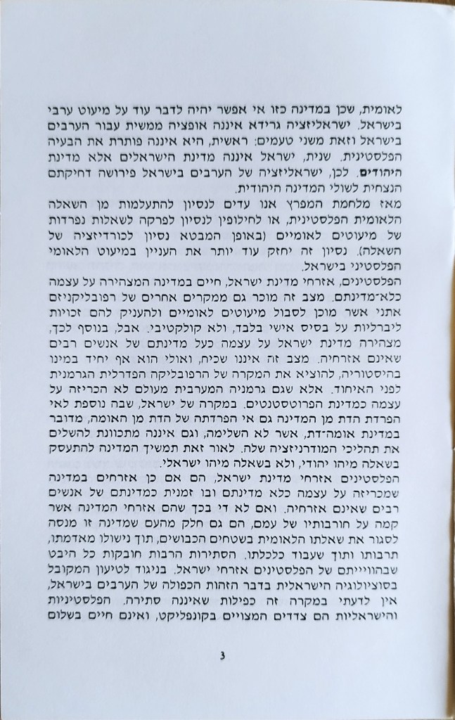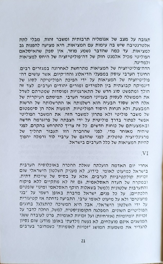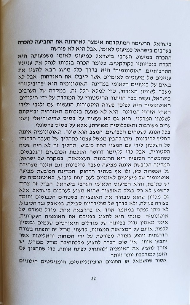 אוטונומיה לאזרחים הפלסטינים של ישראל פורסם בתאריך דצמבר 20, 2023דצמבר 20, 2023 מאת erantorbiner ד"ר עזמי בשארה סיכום הרצאה ודיון. מרץ 1992 מהדורה שנייה בהוצאת ברית שוויון שתף לחיצה לשיתוף ב-X (נפתח בחלון חדש) X לחיצה לשיתוף בפייסבוק (נפתח בחלון חדש) פייסבוק אהבתי טוען... קשור