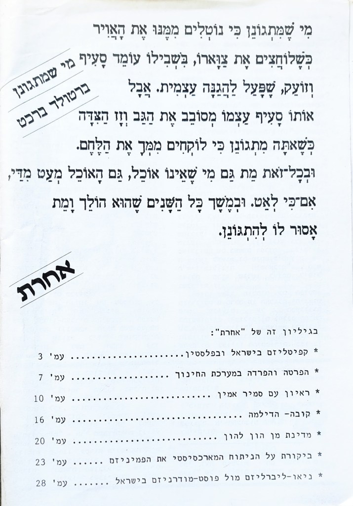 אחרת פורסם בתאריך דצמבר 21, 2023דצמבר 21, 2023 מאת erantorbiner גיליון 1 | קיץ 1993 שתף לחיצה לשיתוף ב-X (נפתח בחלון חדש) X לחיצה לשיתוף בפייסבוק (נפתח בחלון חדש) פייסבוק אהבתי טוען... קשור