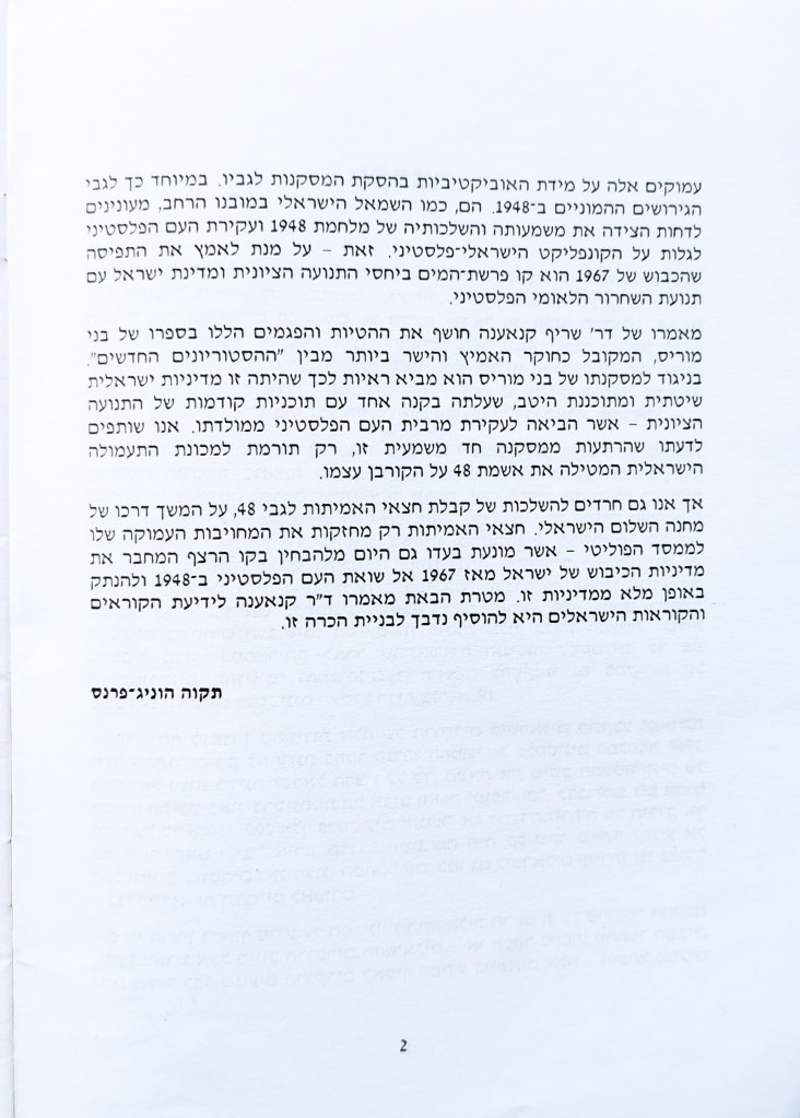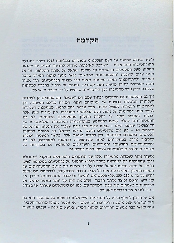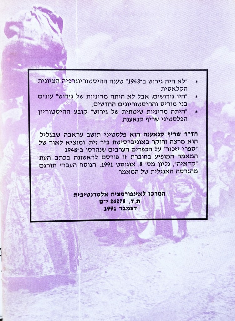 הגירוש פורסם בתאריך דצמבר 21, 2023 מאת erantorbiner מה באמת קרה ב1948? תשובה פלסטינית להיסטוריונים הציונים ולהיסטוריונים החדשים ד"ר שריף קנאענה | דצמבר 1991 שתף לחיצה לשיתוף ב-X (נפתח בחלון חדש) X לחיצה לשיתוף בפייסבוק (נפתח בחלון חדש) פייסבוק אהבתי טוען... קשור