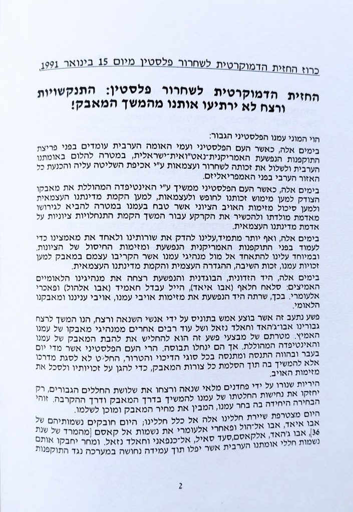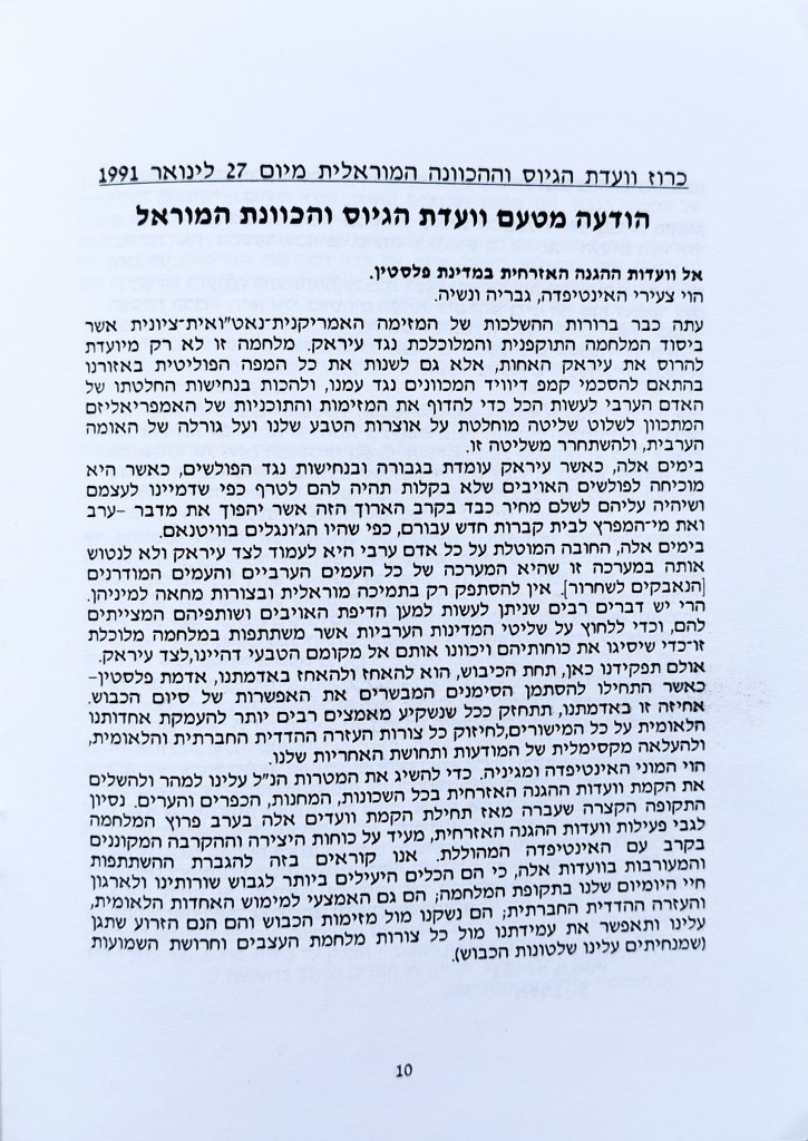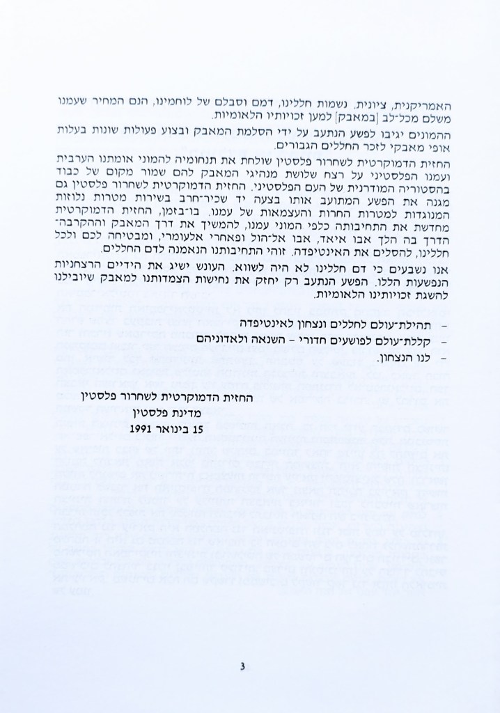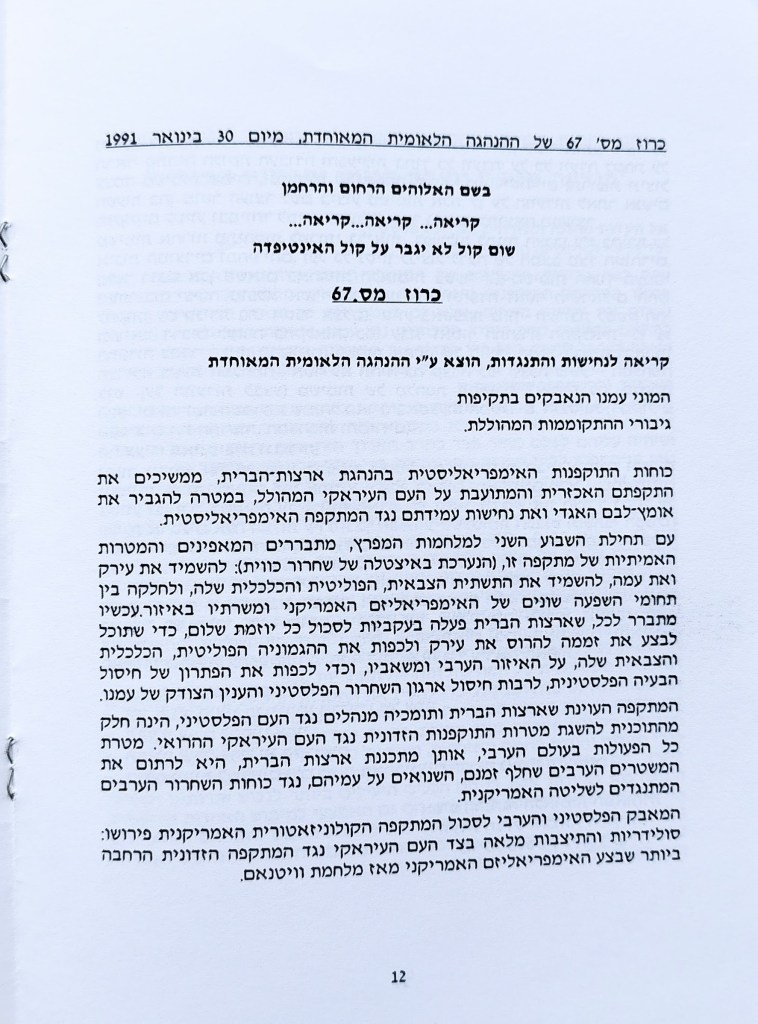 משבר המפרץ בעיני האינטיפדה פורסם בתאריך דצמבר 21, 2023 מאת erantorbiner כרוזי ההנהגה הלאומית המאוחדת והארגונים הפוליטיים בשטחים הכבושים המרכז לאינפורמציה אלטרנטיבת | ינואר, פברואר 1991 שתף לחיצה לשיתוף ב-X (נפתח בחלון חדש) X לחיצה לשיתוף בפייסבוק (נפתח בחלון חדש) פייסבוק אהבתי טוען... קשור