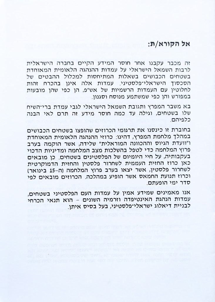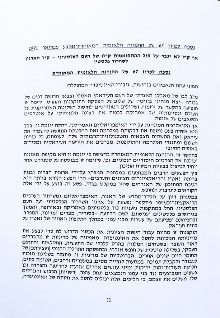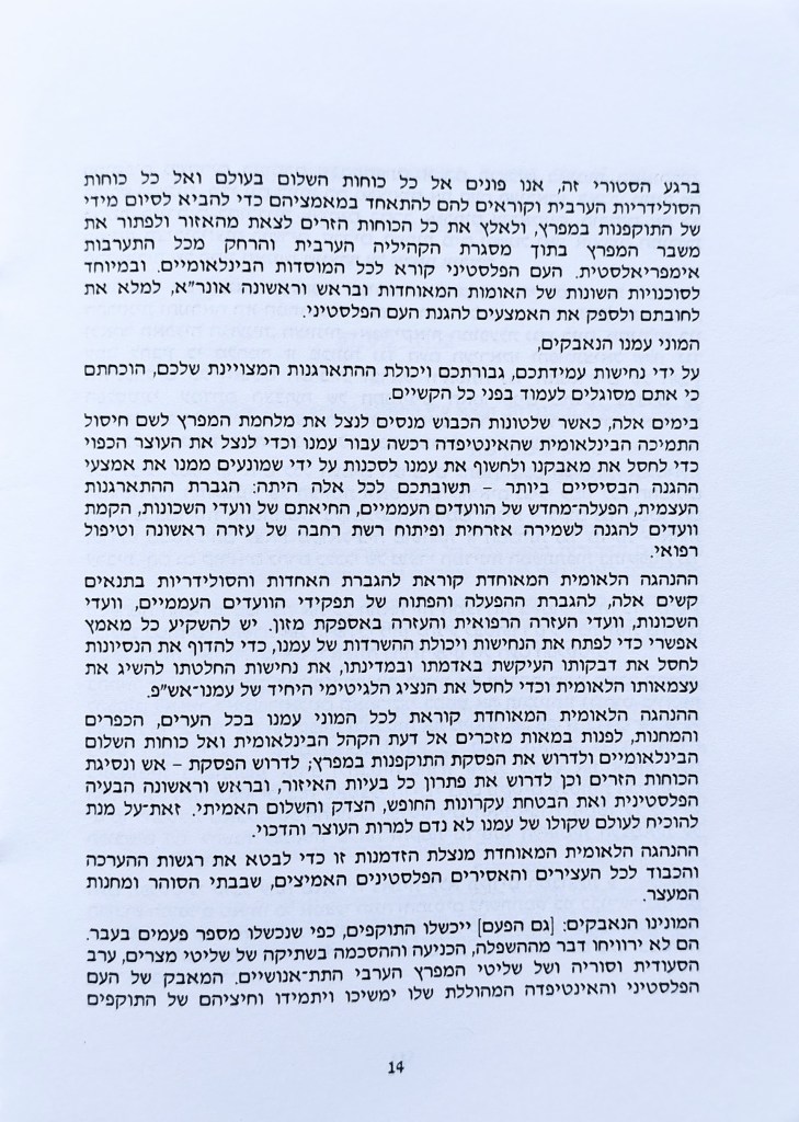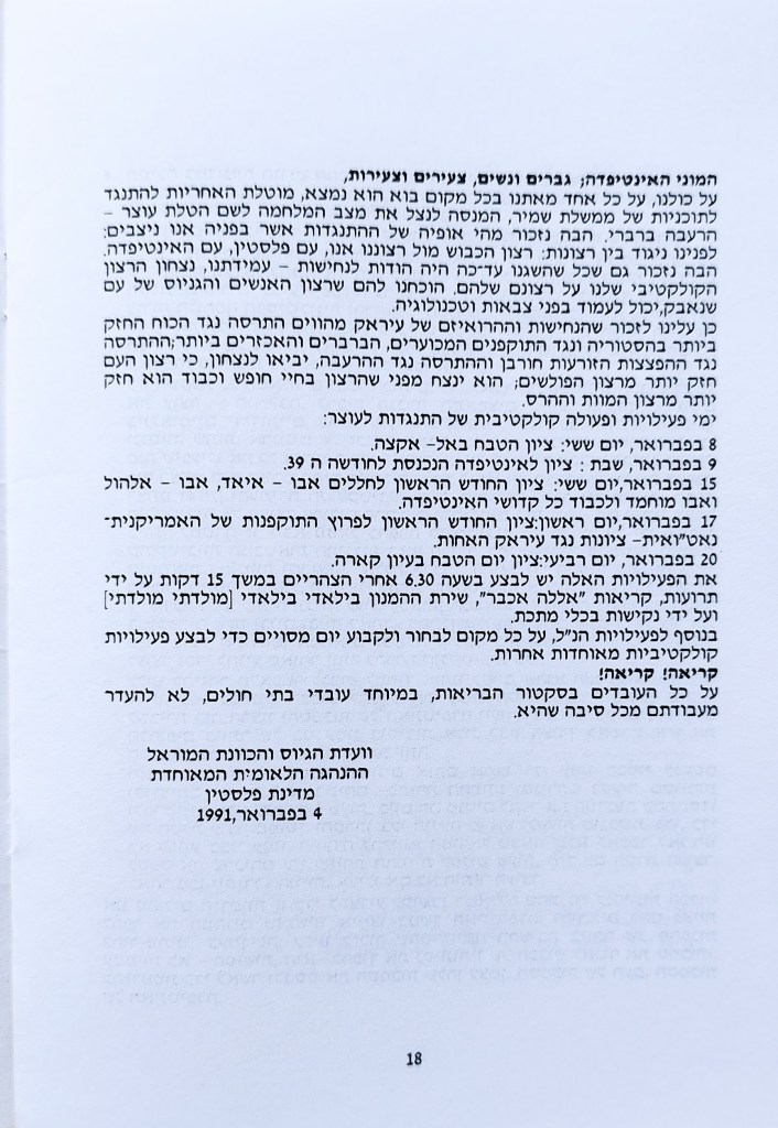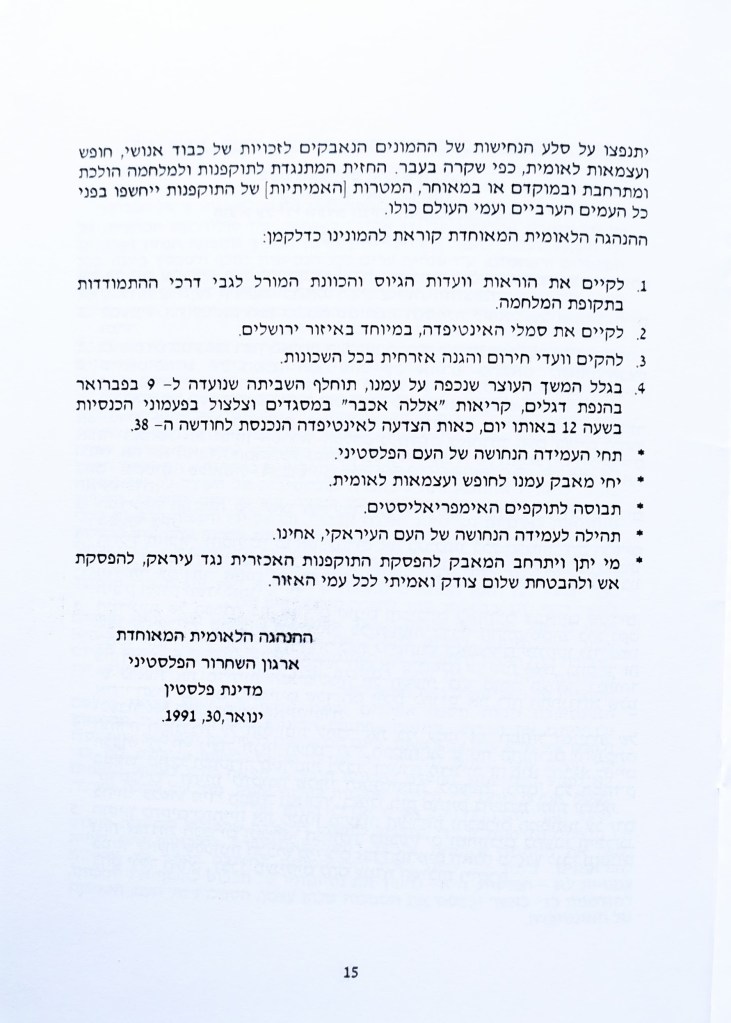 משבר המפרץ בעיני האינטיפדה פורסם בתאריך דצמבר 21, 2023 מאת erantorbiner כרוזי ההנהגה הלאומית המאוחדת והארגונים הפוליטיים בשטחים הכבושים המרכז לאינפורמציה אלטרנטיבת | ינואר, פברואר 1991 שתף לחיצה לשיתוף ב-X (נפתח בחלון חדש) X לחיצה לשיתוף בפייסבוק (נפתח בחלון חדש) פייסבוק אהבתי טוען... קשור