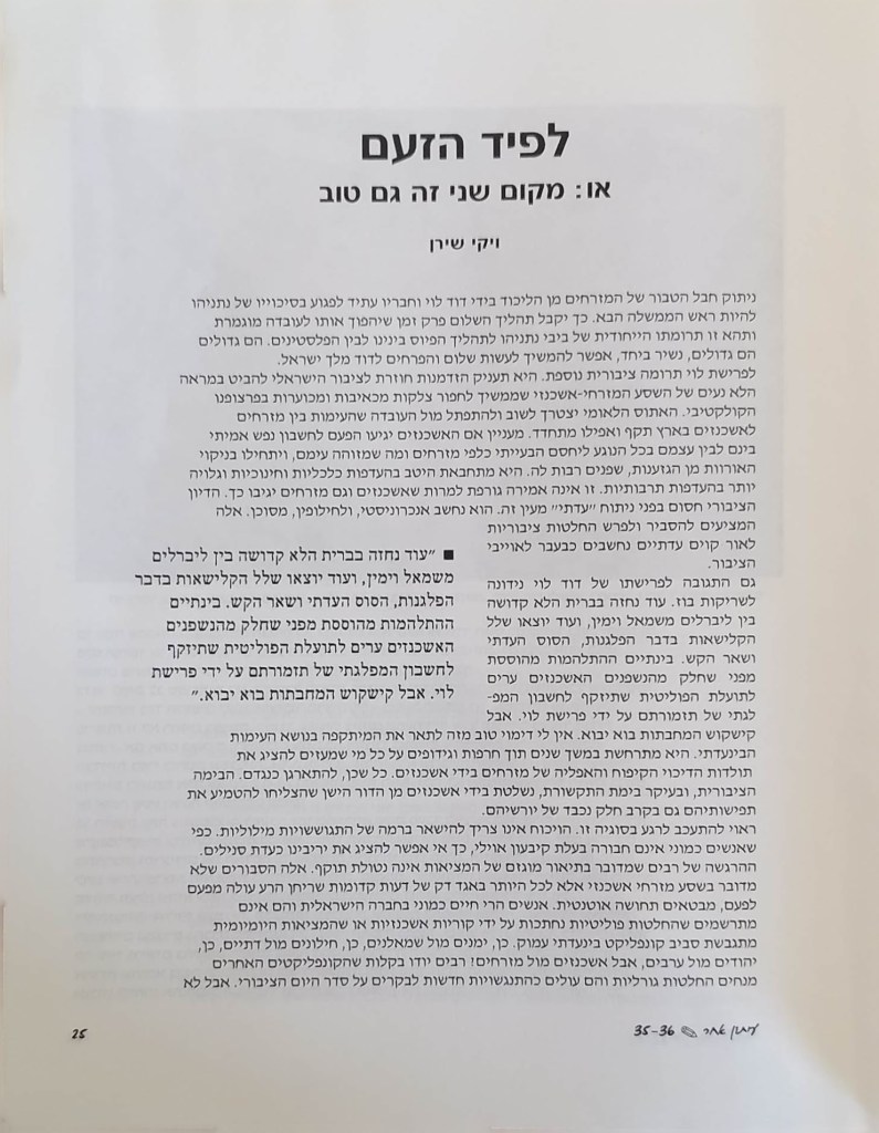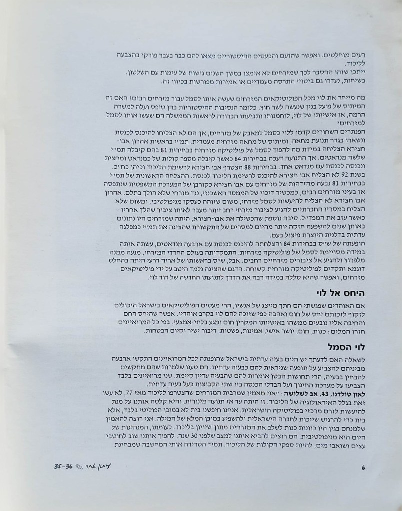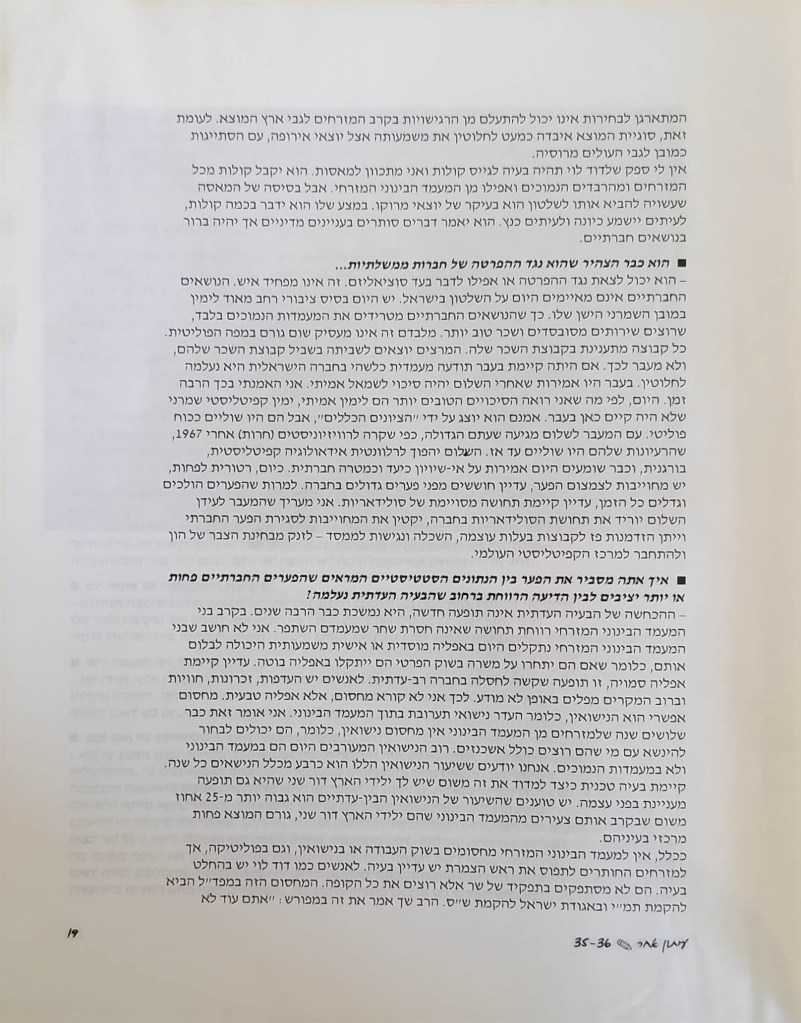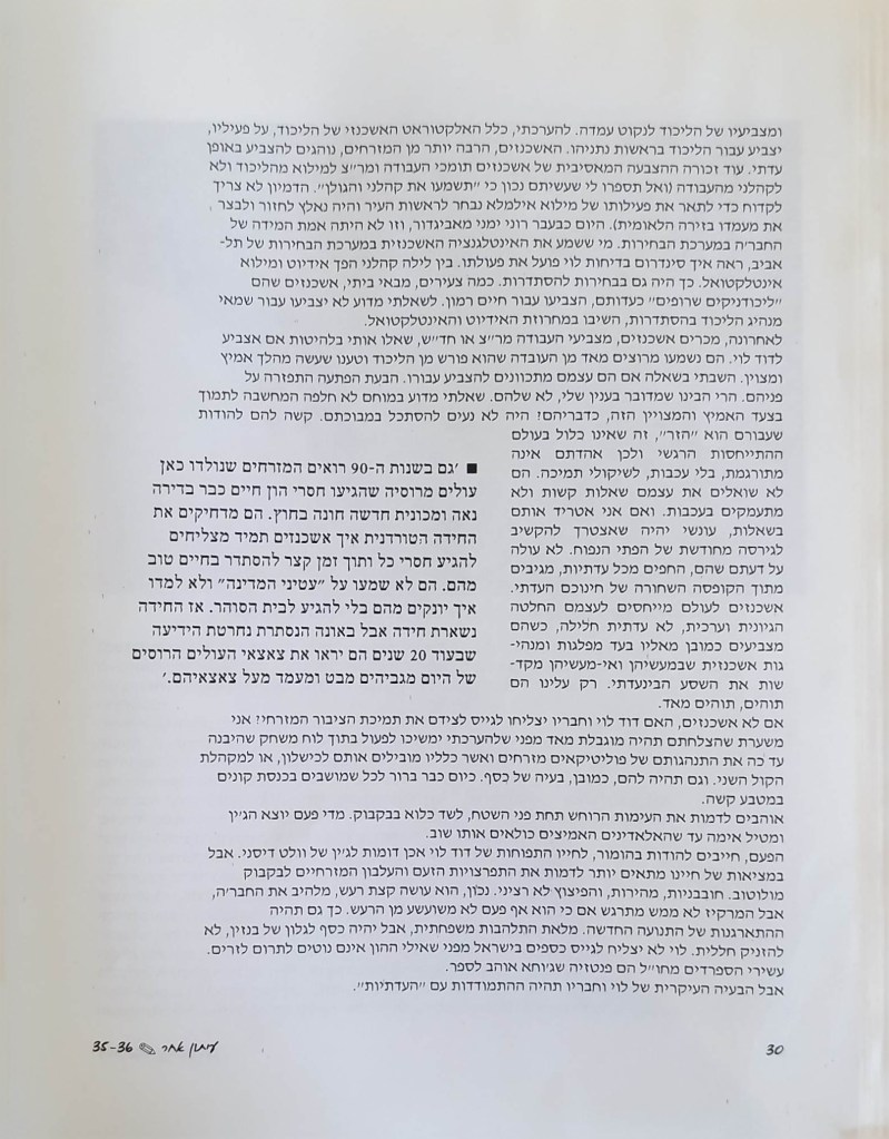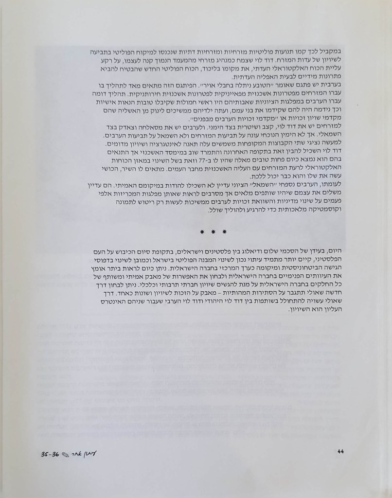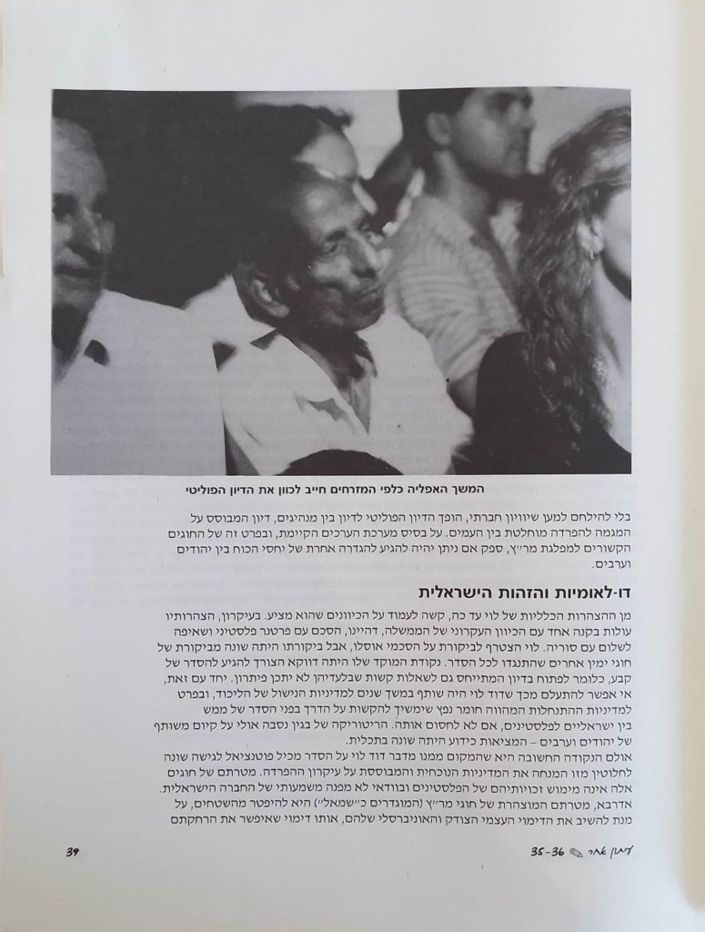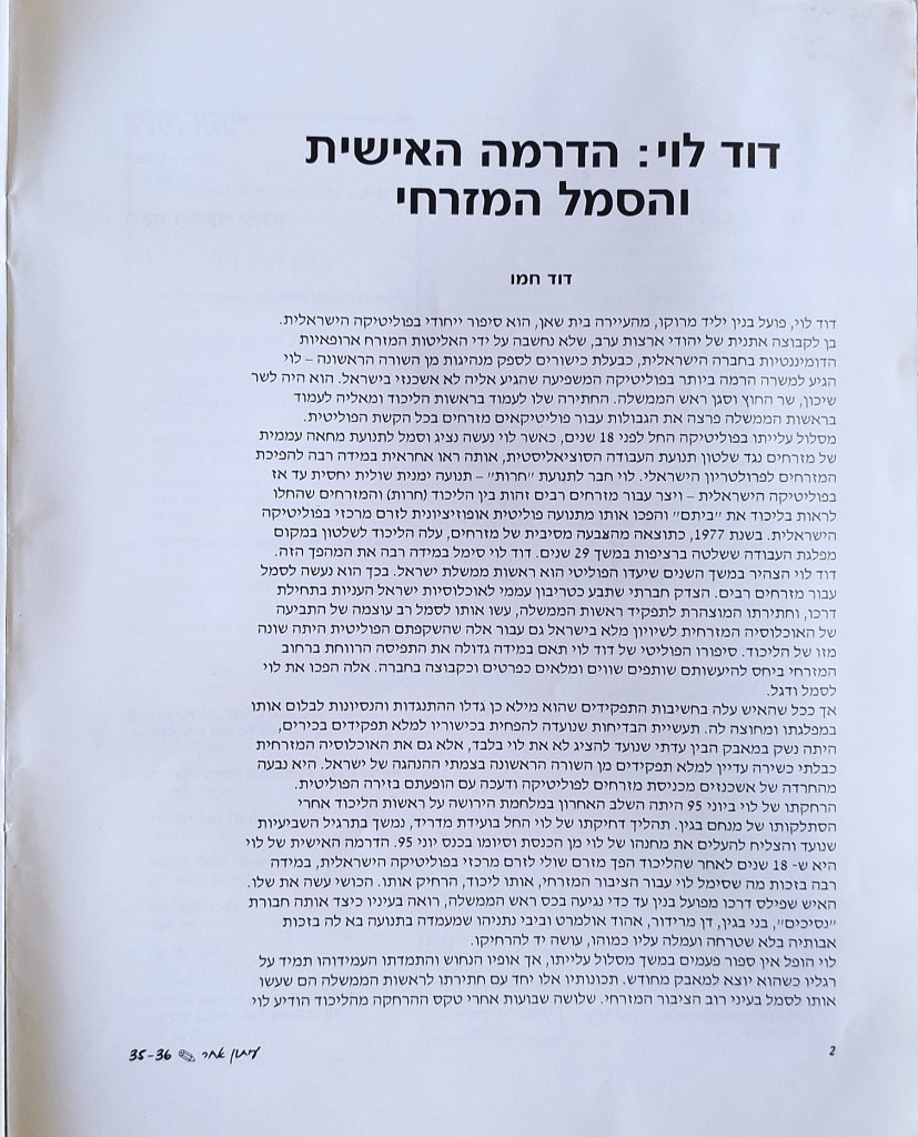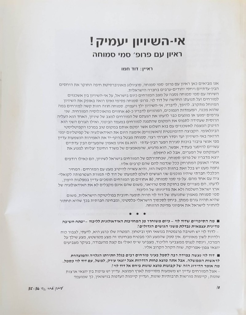 גליון 35-36 | נובמבר-דצמבר 1995 | עורך: דוד חמו | מערכת: חיים ברעם, חיים הנגבי, מרסלו וקסלר, מאיר עמור, יעל צדוק, יוסף שילוח, נסים קלדרון, מירון רפפורט, סמי שלום שטרית, ויקי שירן | תצלומים: שרון חמו