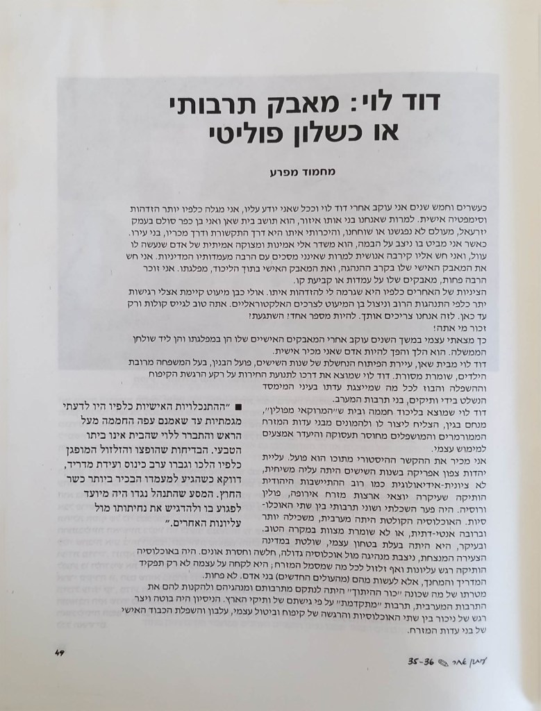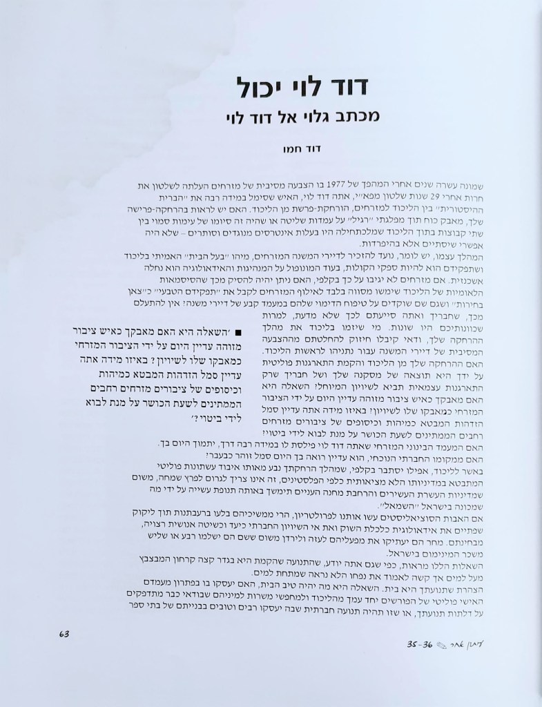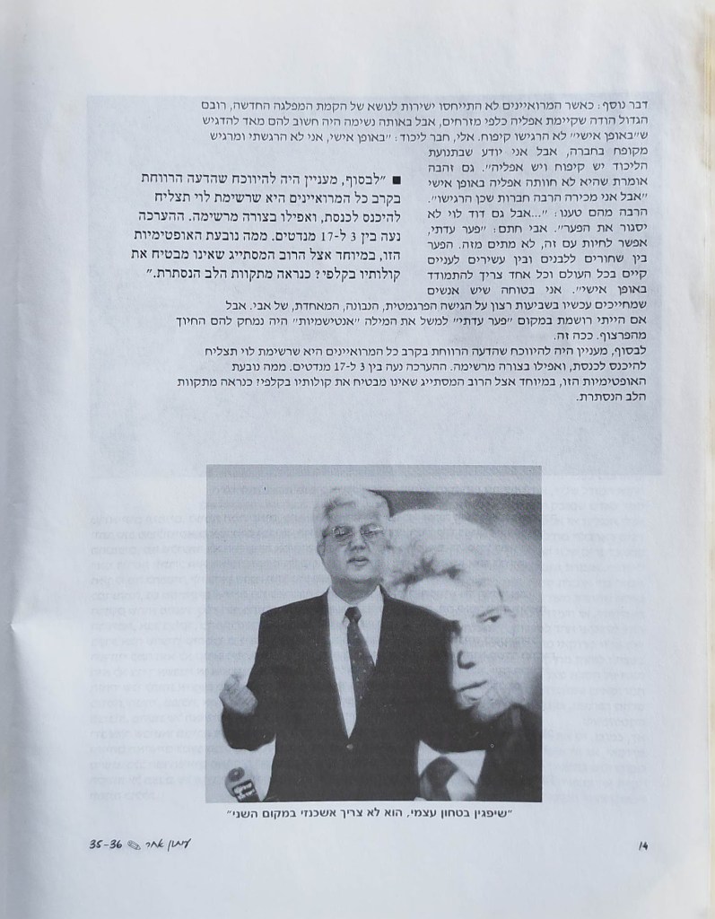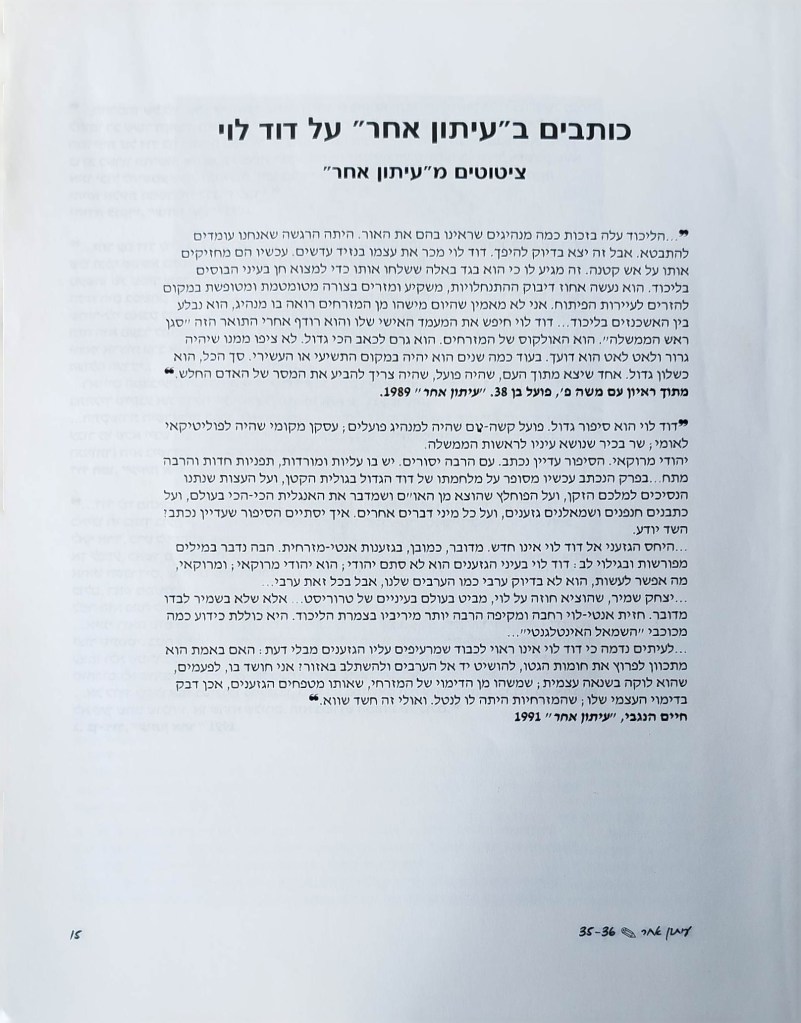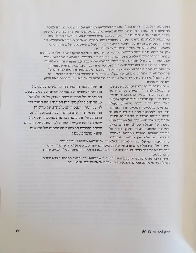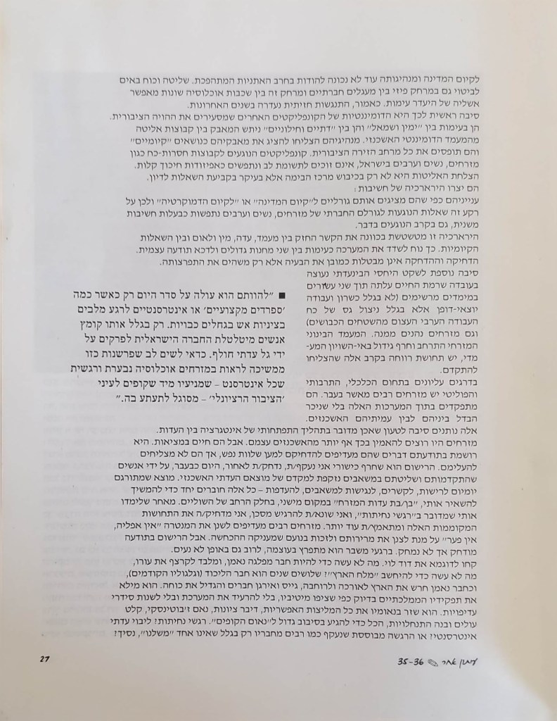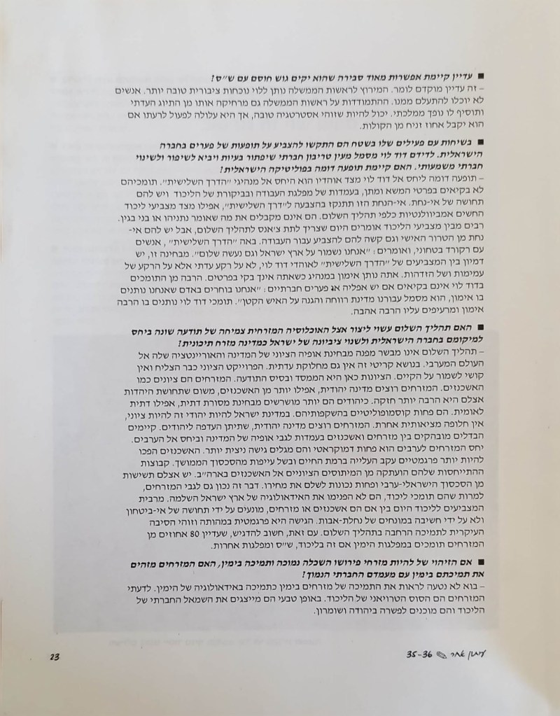 גליון 35-36 | נובמבר-דצמבר 1995 | עורך: דוד חמו | מערכת: חיים ברעם, חיים הנגבי, מרסלו וקסלר, מאיר עמור, יעל צדוק, יוסף שילוח, נסים קלדרון, מירון רפפורט, סמי שלום שטרית, ויקי שירן | תצלומים: שרון חמו
