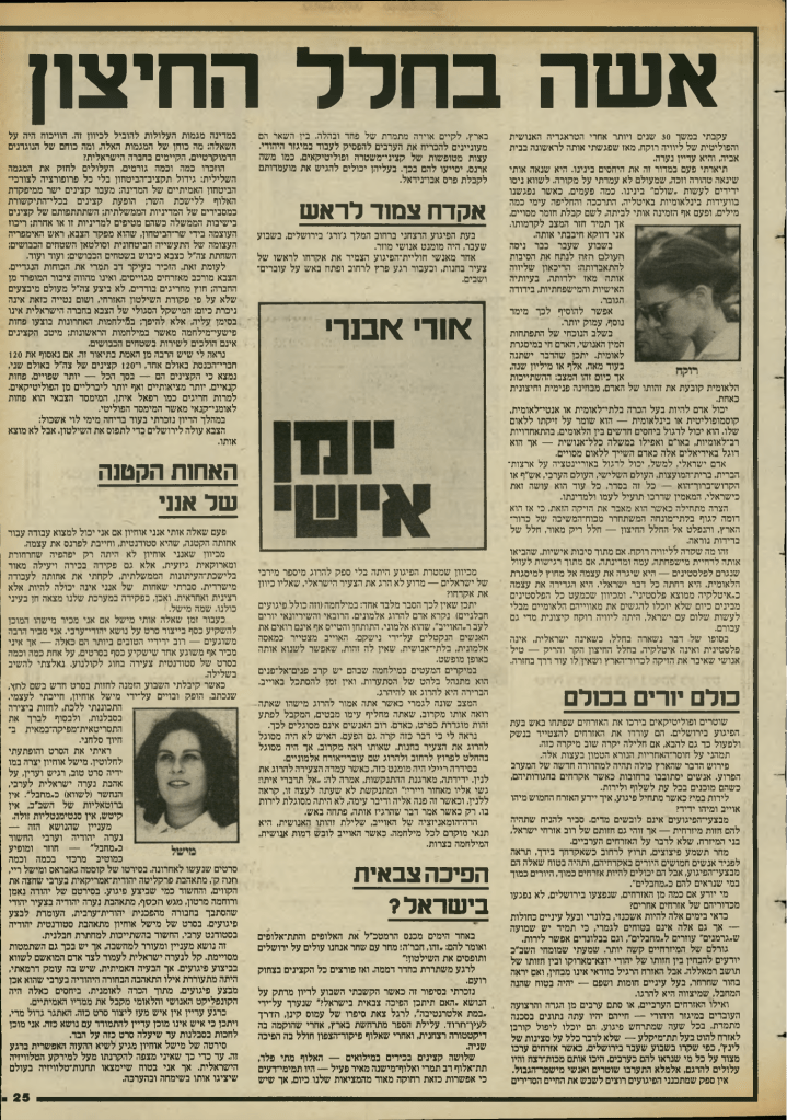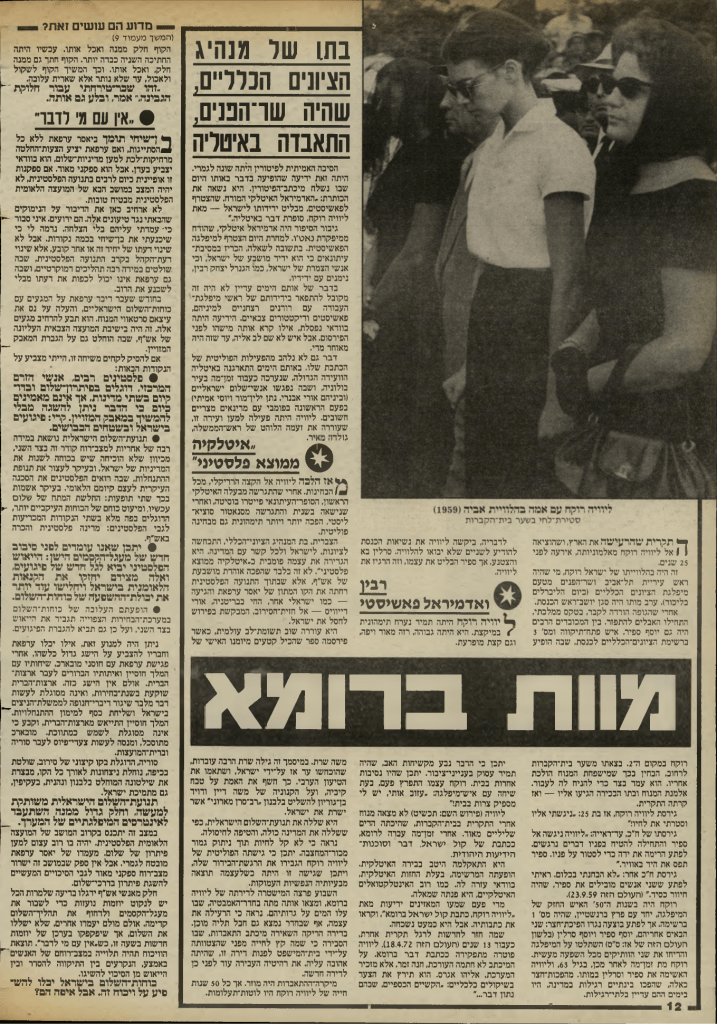 לויה רוקח פורסם בתאריך דצמבר 29, 2023דצמבר 22, 2025 מאת erantorbiner לויה רוקח (21.2.1934 תל אביב – 31.3.1984 רומא) עיתונאית וסופרת. שתף לחיצה לשיתוף ב-X (נפתח בחלון חדש) X לחיצה לשיתוף בפייסבוק (נפתח בחלון חדש) פייסבוק אהבתי טוען... קשור