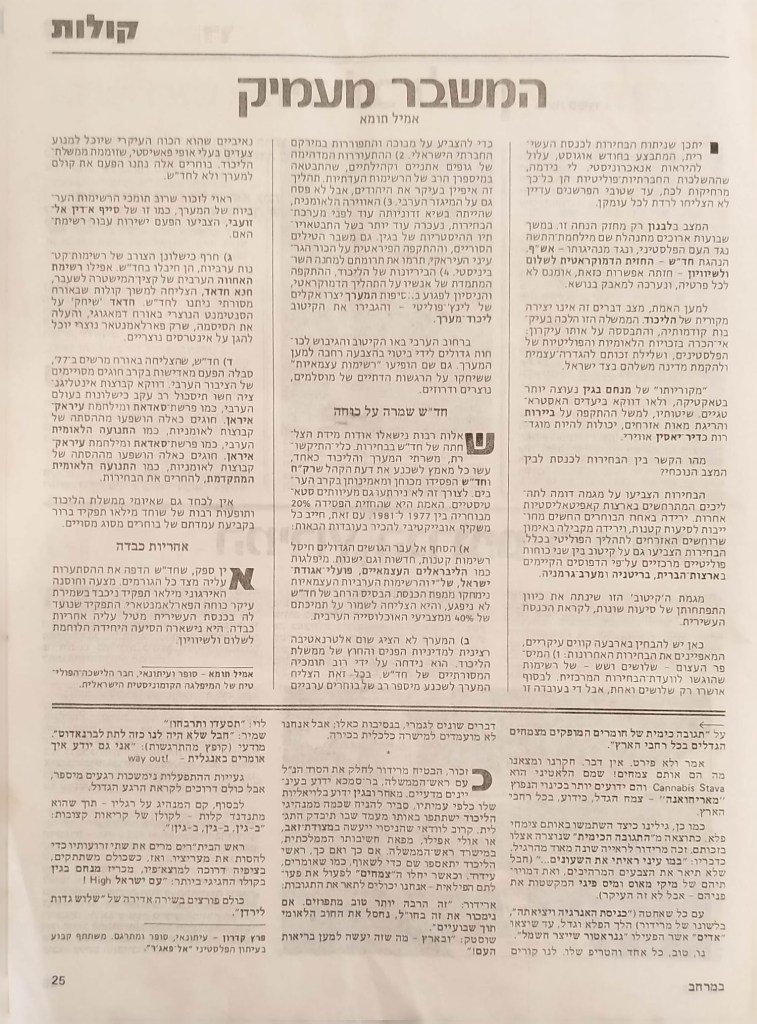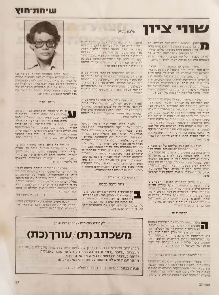 במרחב פורסם בתאריך ינואר 7, 2024אפריל 25, 2024 מאת erantorbiner גליון 3-4 | קיץ 1981 | עורך ראשי: מקסים גילן | עורך: חיים ברעם לקריאת גליונות מרחב נוספים שתף לחיצה לשיתוף ב-X (נפתח בחלון חדש) X לחיצה לשיתוף בפייסבוק (נפתח בחלון חדש) פייסבוק אהבתי טוען... קשור