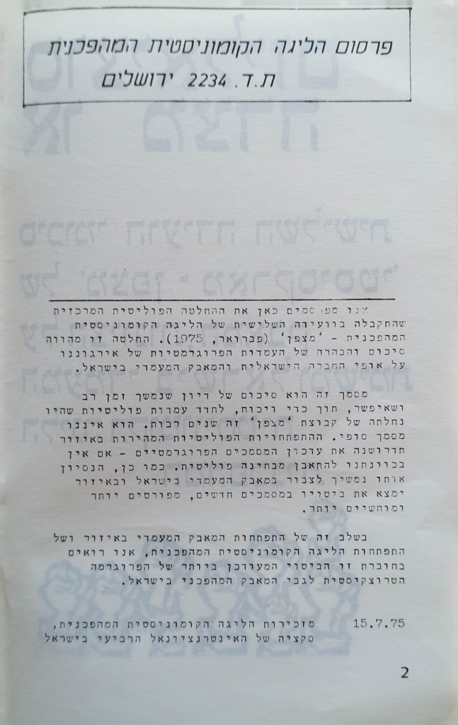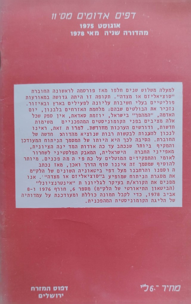 האלטרנטיבה של הקומוניסטים המהפכנים לציונות | דפים אדומים מס' 11 | אוגוסט 1975 | מהדורה שניה מאי 1978