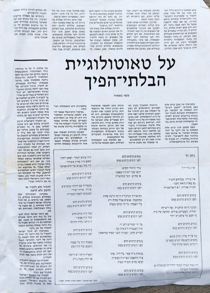 שומר הניצוץ פורסם בתאריך ינואר 9, 2024 מאת erantorbiner הוצאה חד פעמית | 19.5.1988 שתף לחיצה לשיתוף ב-X (נפתח בחלון חדש) X לחיצה לשיתוף בפייסבוק (נפתח בחלון חדש) פייסבוק אהבתי טוען... קשור