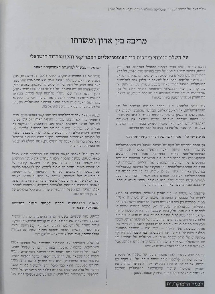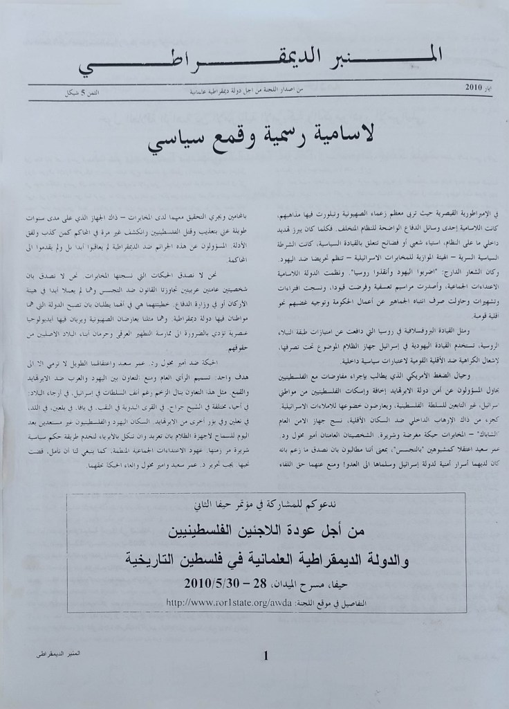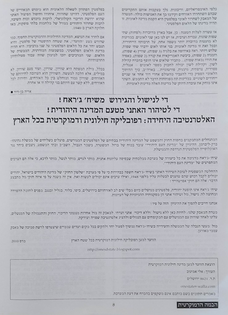 הבמה הדמוקרטית (עברית וערבית) פורסם בתאריך ינואר 12, 2024ינואר 23, 2024 מאת erantorbiner הוצאת הוועד למען מדינה חילונית דמוקרטית | מאי 2010 | העורך: אלי אמינוב שתף לחיצה לשיתוף ב-X (נפתח בחלון חדש) X לחיצה לשיתוף בפייסבוק (נפתח בחלון חדש) פייסבוק אהבתי טוען... קשור