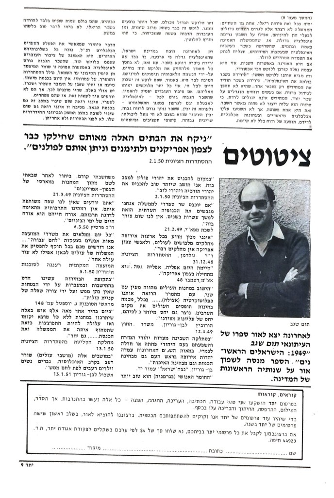 מתוך עמוד מספר 2, יתד מתכוון להיות במה, מקרופון וצג לקול שעד כה לא נשמע, לדעה שעד כה לא הושמעה, לפני שעד כה לא הוצגו במלואן. נתאמץ מאוד לעשות ולו רק צעד אחד הכיוון הנכון.