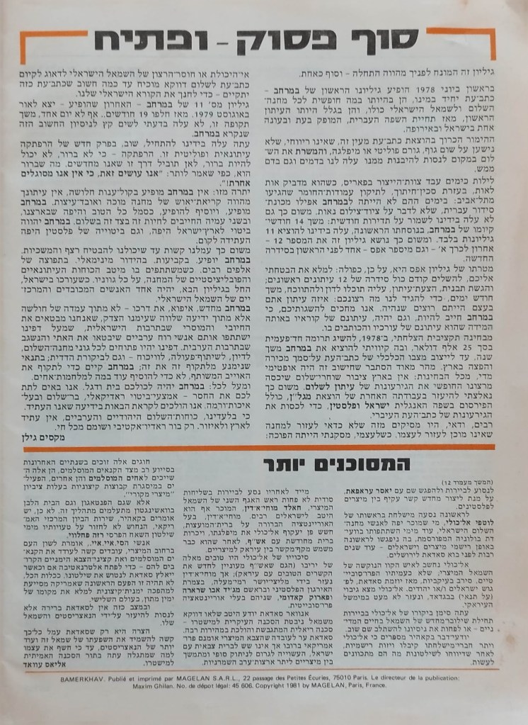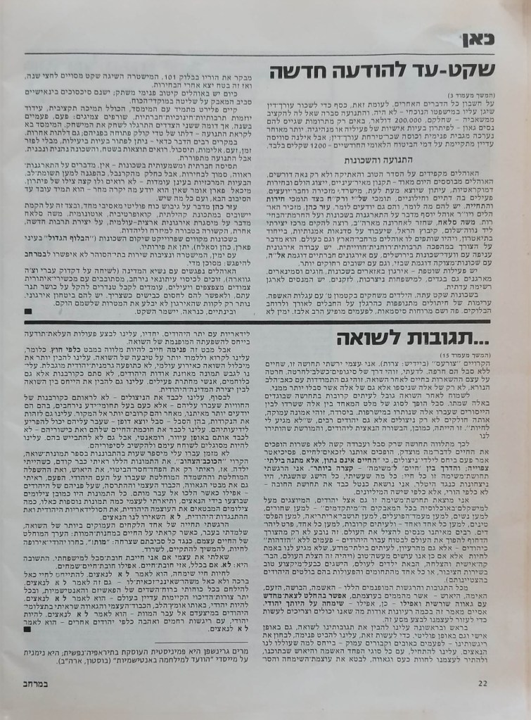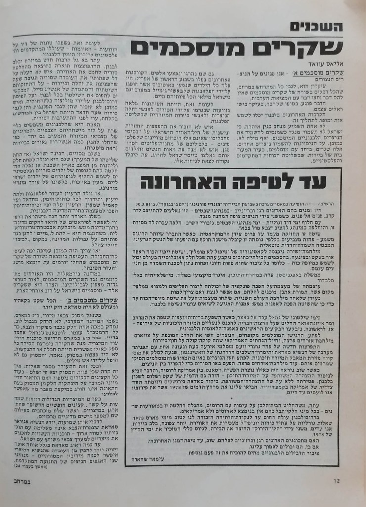 במרחב פורסם בתאריך ינואר 14, 2024אפריל 25, 2024 מאת erantorbiner עיתון לשלום | העורך : מקסים גילן | גליון מספר 12 (0) | אפריל 1981 לקריאת גליונות מרחב נוספים שתף לחיצה לשיתוף ב-X (נפתח בחלון חדש) X לחיצה לשיתוף בפייסבוק (נפתח בחלון חדש) פייסבוק אהבתי טוען... קשור