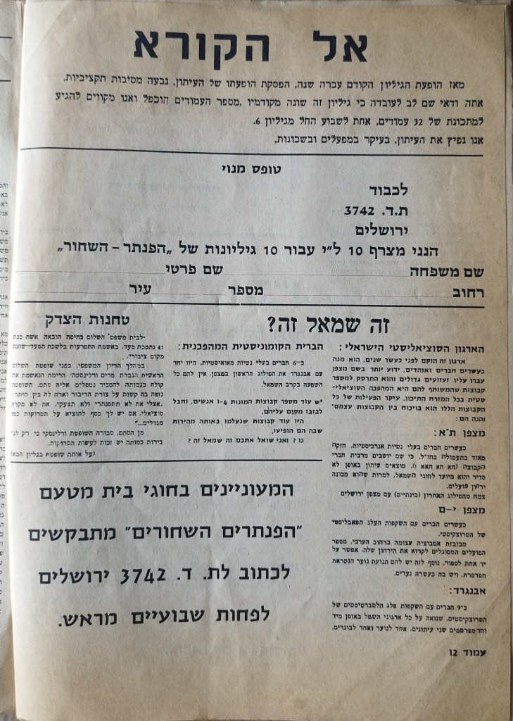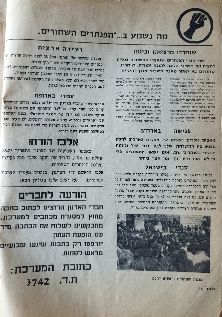 הפנתר השחור פורסם בתאריך ינואר 15, 2024ינואר 15, 2024 מאת erantorbiner העורך: כוכבי שמש | גליון מספר 2 | 11.8.1972 שתף לחיצה לשיתוף ב-X (נפתח בחלון חדש) X לחיצה לשיתוף בפייסבוק (נפתח בחלון חדש) פייסבוק אהבתי טוען... קשור