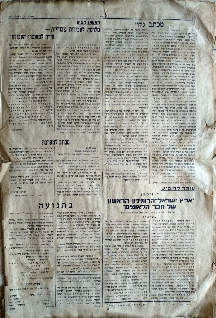 במפנה פורסם בתאריך ינואר 16, 2024 מאת erantorbiner שנה שלישית | עתון פועלים | העורך והמו"ל: העו"ד י. קושניר | תל אביב, 9 ביולי 1937 | גליון (36) 2 שתף לחיצה לשיתוף ב-X (נפתח בחלון חדש) X לחיצה לשיתוף בפייסבוק (נפתח בחלון חדש) פייסבוק אהבתי טוען... קשור