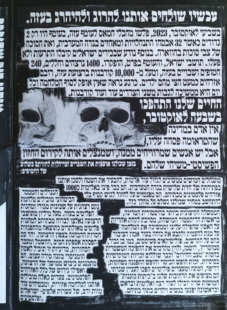 דור ז' | עד מתי פורסם בתאריך ינואר 21, 2024 מאת erantorbiner דור אחר דור שלוחים אותנו להגן על המדינה, שלא באמת מגינה עלינו | 2023 שתף לחיצה לשיתוף ב-X (נפתח בחלון חדש) X לחיצה לשיתוף בפייסבוק (נפתח בחלון חדש) פייסבוק אהבתי טוען... קשור