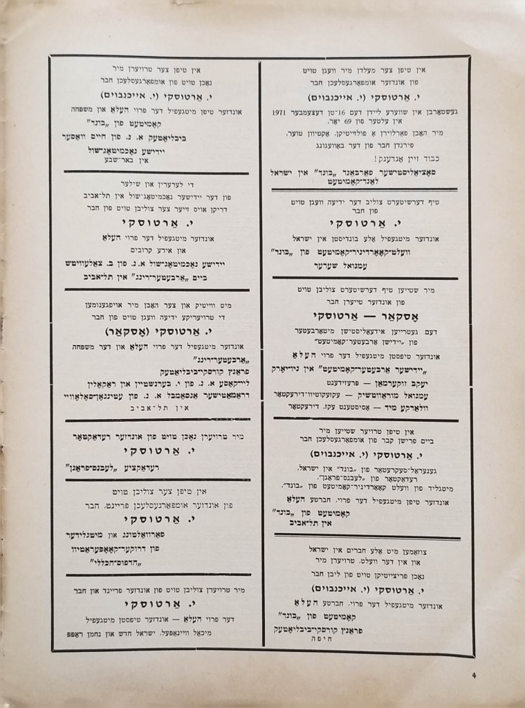 לעבנס פראגן | סאציאליסטישע חודש שריפט פאר פאליטיק, ווירטשאפט און קולטור פורסם בתאריך ינואר 21, 2024ינואר 21, 2024 מאת erantorbiner נאוועמבער-דעצעצבער 1971 | 236-237 | 21 סטער יארגאנג | פרייז 150 אגורות י. ארטוסקי נישטא שתף לחיצה לשיתוף ב-X (נפתח בחלון חדש) X לחיצה לשיתוף בפייסבוק (נפתח בחלון חדש) פייסבוק אהבתי טוען... קשור