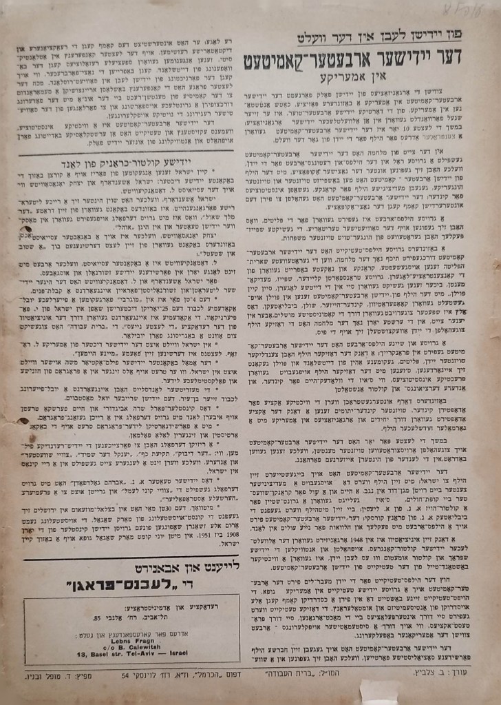 לעבנס פראגן | סאציאליסטישע חודש שריפט פאר פאליטיק, ווירטשאפט און קולטור פורסם בתאריך ינואר 21, 2024 מאת erantorbiner אביב יוני 1951 | 2 |פרייז 100 פר נאך דריי יאר שתף לחיצה לשיתוף ב-X (נפתח בחלון חדש) X לחיצה לשיתוף בפייסבוק (נפתח בחלון חדש) פייסבוק אהבתי טוען... קשור