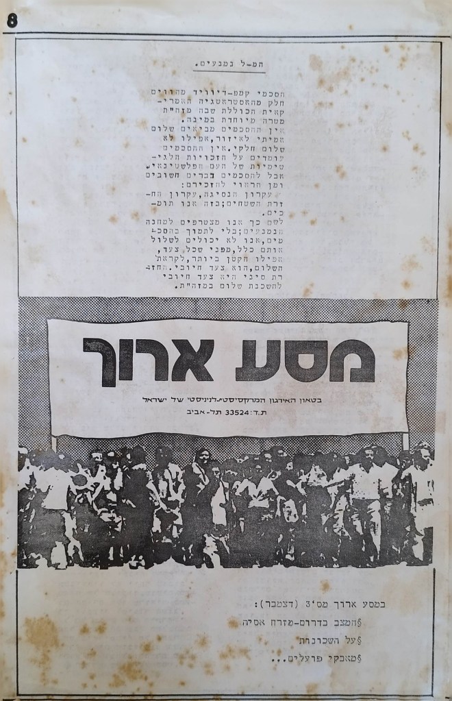 מסע ארוך פורסם בתאריך ינואר 21, 2024 מאת erantorbiner בטאון הארגון המרקסיסטי-לניניסטי של ישראל | אוקטובר-נובמבר 1978 | מספר 2 | מחיר 5 ל"י שתף לחיצה לשיתוף ב-X (נפתח בחלון חדש) X לחיצה לשיתוף בפייסבוק (נפתח בחלון חדש) פייסבוק אהבתי טוען... קשור