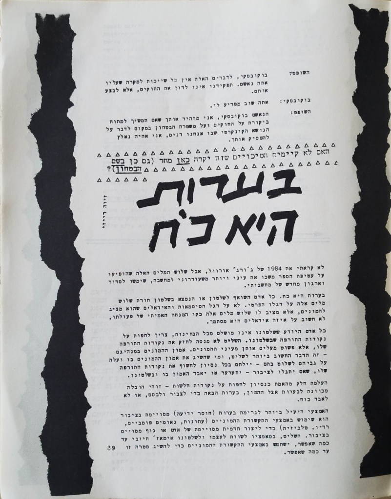 געשוש פורסם בתאריך ינואר 22, 2024ינואר 22, 2024 מאת erantorbiner עורך: חנוך א. | 1968 | טרומפלדור 22 תל אביב שתף לחיצה לשיתוף ב-X (נפתח בחלון חדש) X לחיצה לשיתוף בפייסבוק (נפתח בחלון חדש) פייסבוק אהבתי טוען... קשור