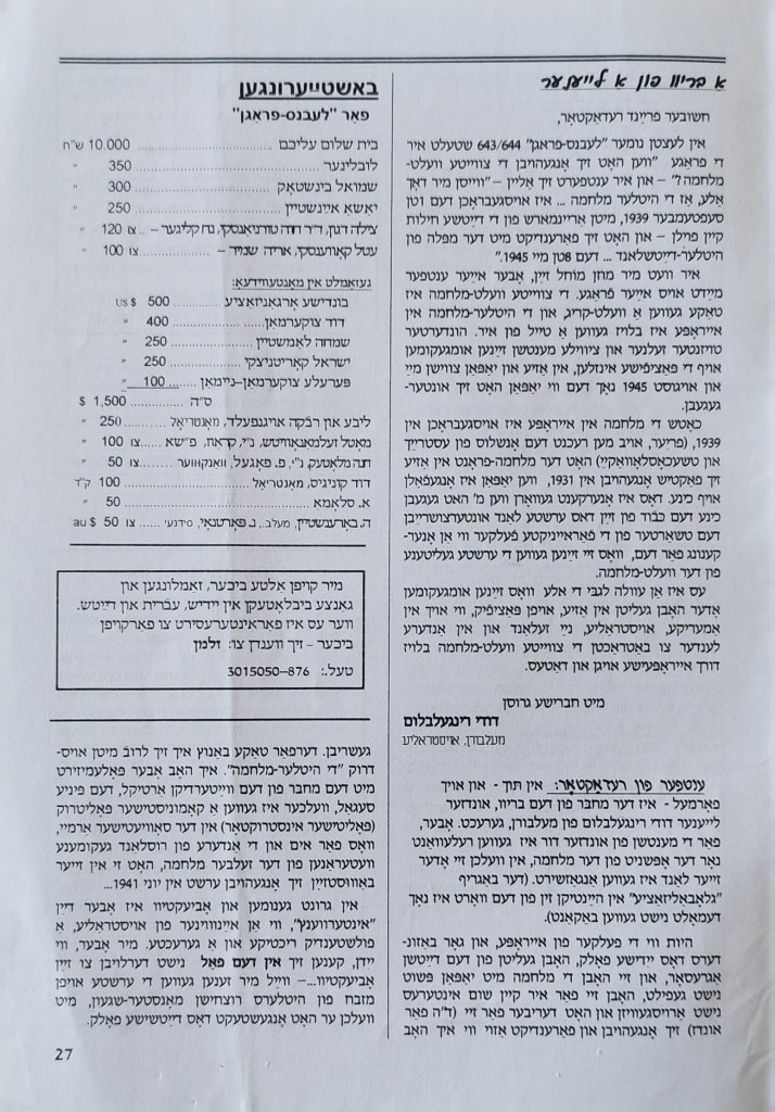 לקריאת גליונות לעבנס פראגן שיצאו בין 1 במאי 1951 – 1 אפריל2014 באתר עתונות יהודית הסטורית