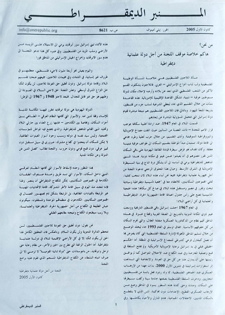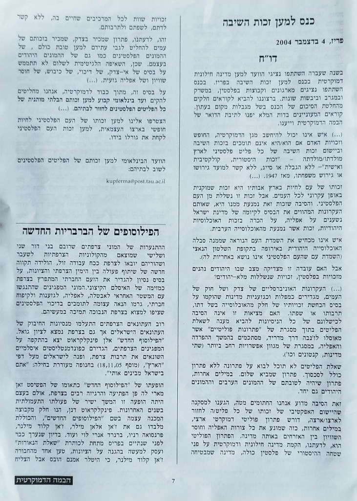 הבמה הדמוקרטית (עברית וערבית) פורסם בתאריך ינואר 23, 2024 מאת erantorbiner הוצאת הוועד למען מדינה חילונית דמוקרטית | דצמבר 2005 | העורך: אלי אמינוב שתף לחיצה לשיתוף ב-X (נפתח בחלון חדש) X לחיצה לשיתוף בפייסבוק (נפתח בחלון חדש) פייסבוק אהבתי טוען... קשור