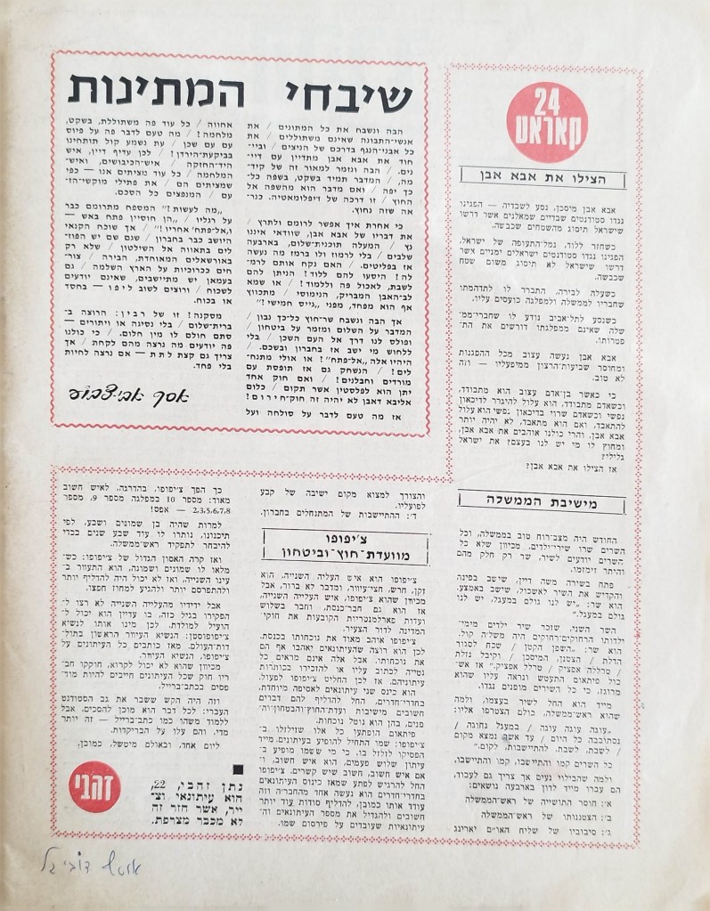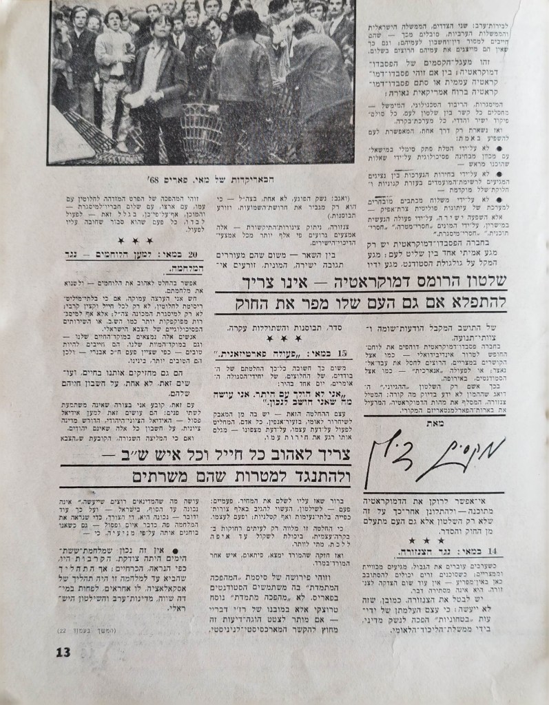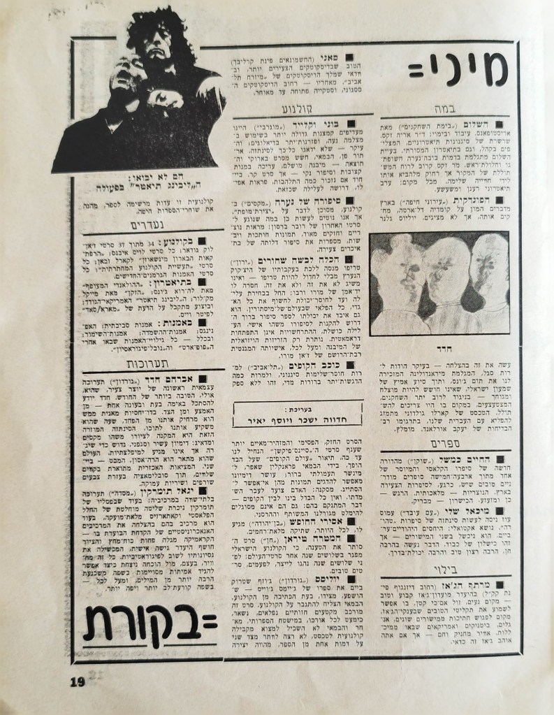 עורך: מקסים גילן | עורך משנה: רפי זכרוני | עורך אחראי ומו"ל: נעים גלעדי | צוות המערכת: רפי זכרוני, יוסף יאיר, חדווה ישכר, רחל מיכאלי, יוסי שוהם | 5 ביוני 1968