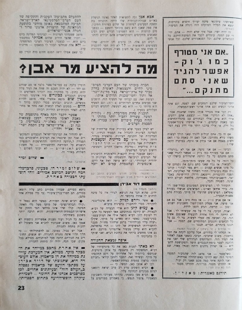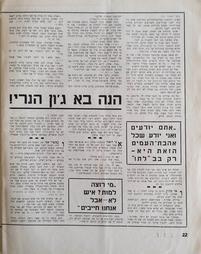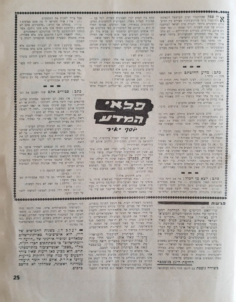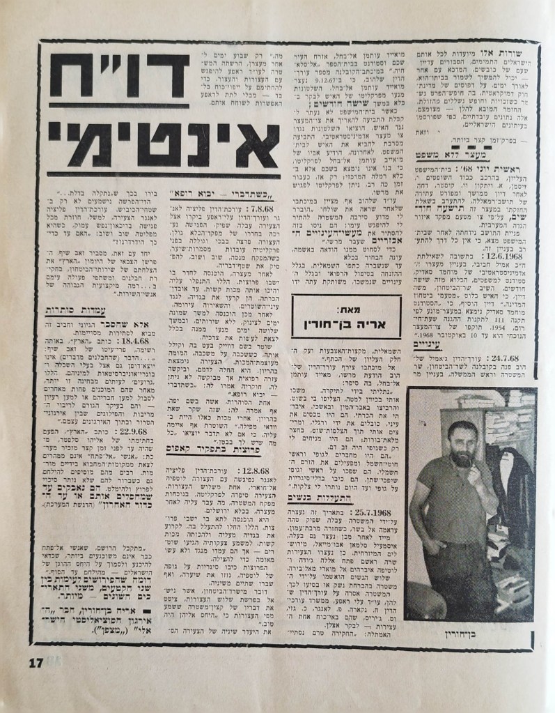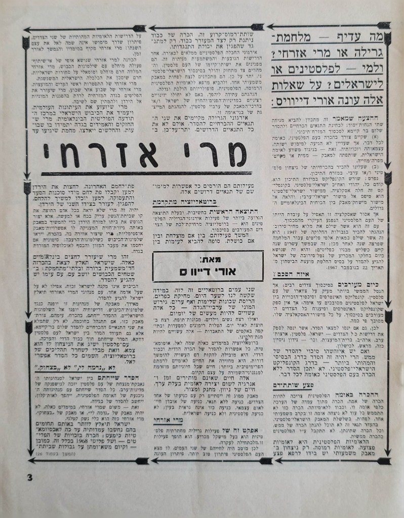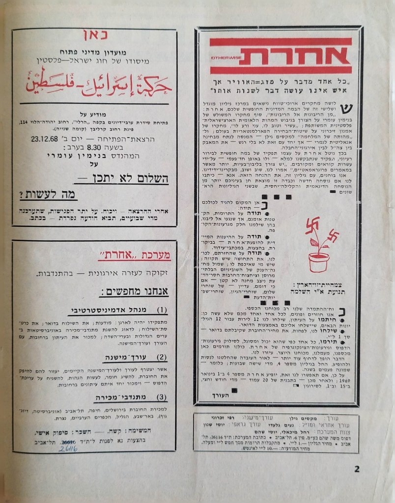 דצמבר-ינואר 1968-1969 | גליון מספר 3 | עורך: מקסים גילן | עורך משנה: רפי זכרוני | עורך אחראי ומו"ל: נעים גלעדי | צוות המערכת: רחל מיכאל, יוסי שהם