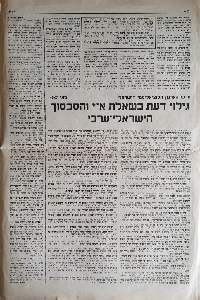 בטאון הארגון הסוציאליסטי הישראלי | ירחון פועלים | גליון מספר 36 | יוני-יולי 1967 | העורך: עודד פילבסקי | המו"ל: ד"ר משה מחובר