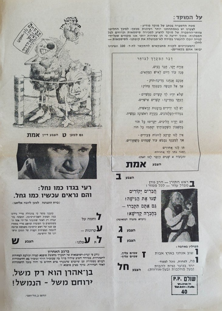 תכלת-אדום פורסם בתאריך ינואר 29, 2024 מאת erantorbiner דו שבועון | מס' 2 | 9 לאוגוסט 1973 שתף לחיצה לשיתוף ב-X (נפתח בחלון חדש) X לחיצה לשיתוף בפייסבוק (נפתח בחלון חדש) פייסבוק אהבתי טוען... קשור