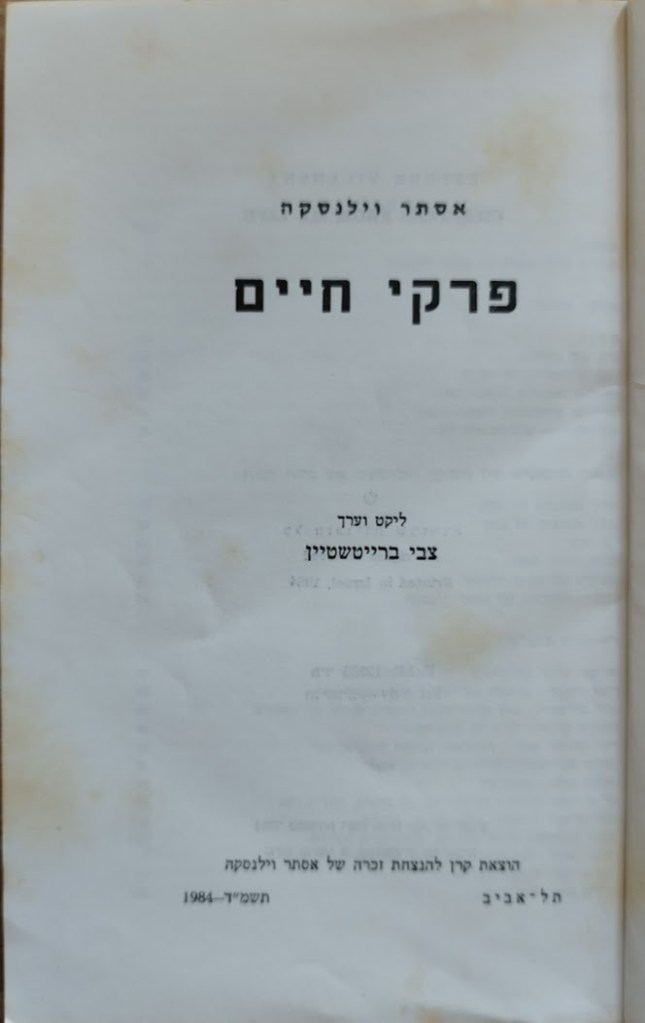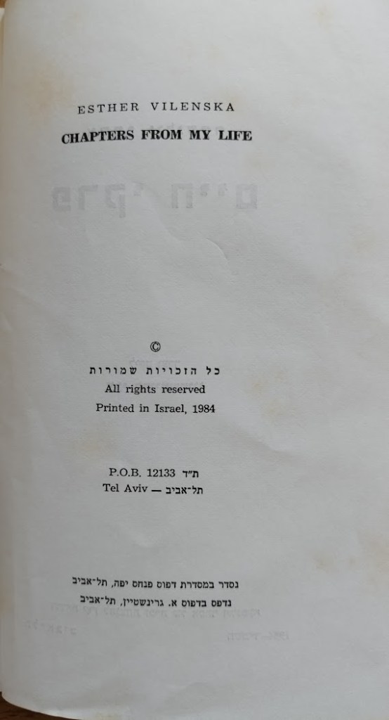 מחשבה אחת על “אסתר וילנסקה | פרקי חיים”