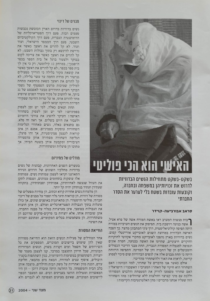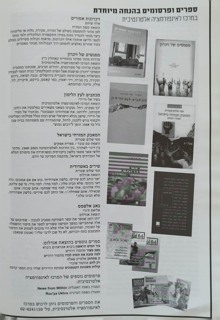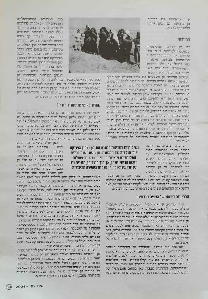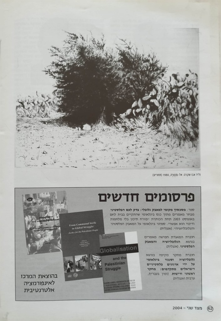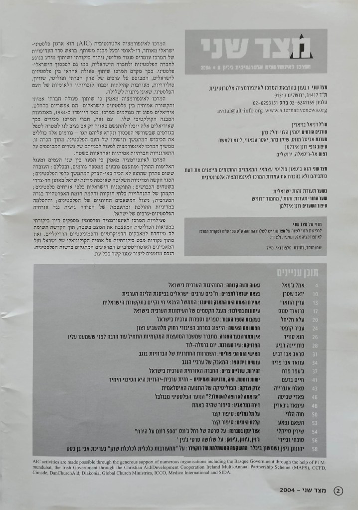 רבעון בהוצאת המרכז לאינפורמאציה אלטרנטיבית | גליון כפול 6-7 | 2004 | מו"ל: דניאל בויארין | עורכים אורחים: יסמין הלוי והלל כהן | מערכת: אביטל מוזס, שיקו בהר, יאסר עכאווי, לינא דלאשה | עיצוב גרפי: רונן אידלמן | דפוס: אל רסאלה, ירושלים