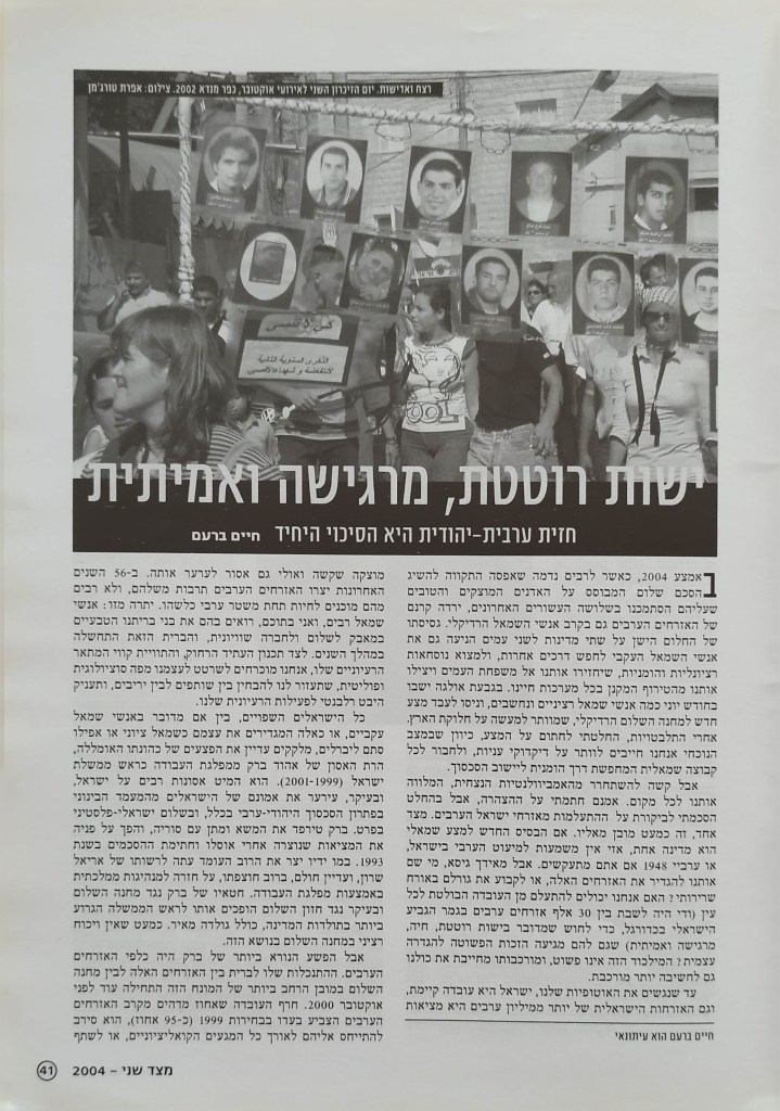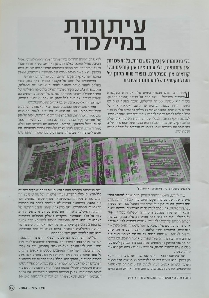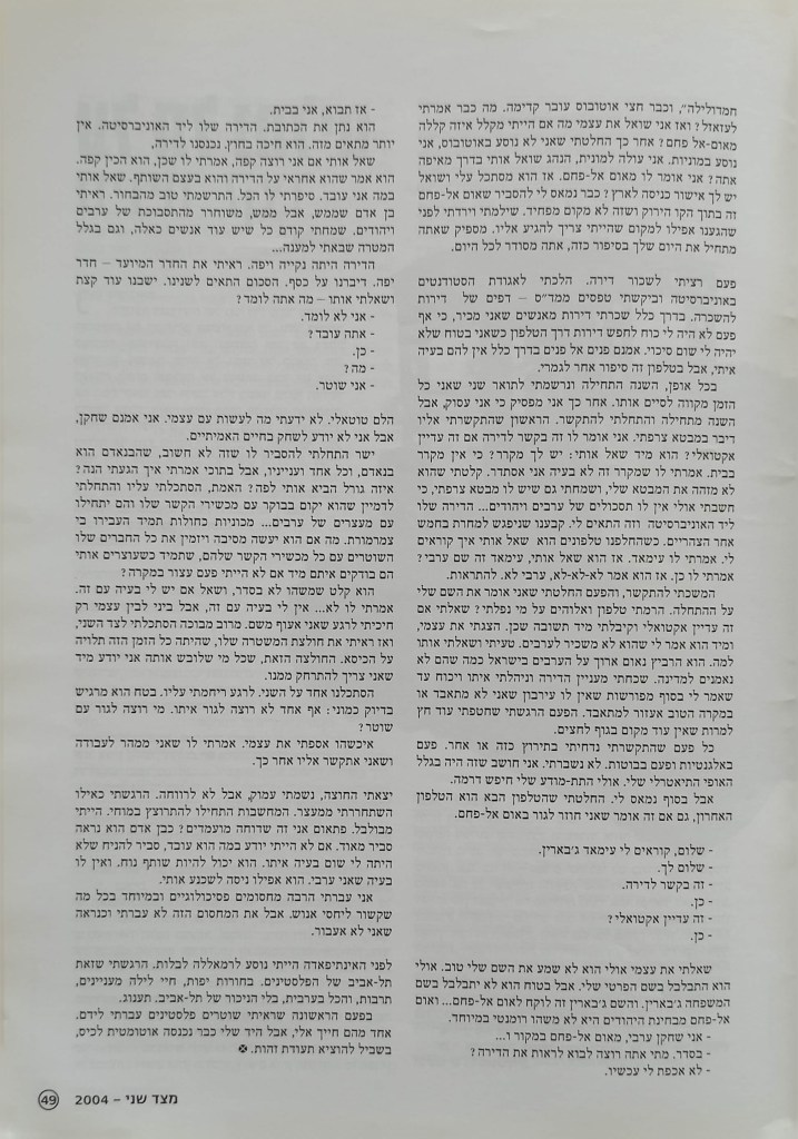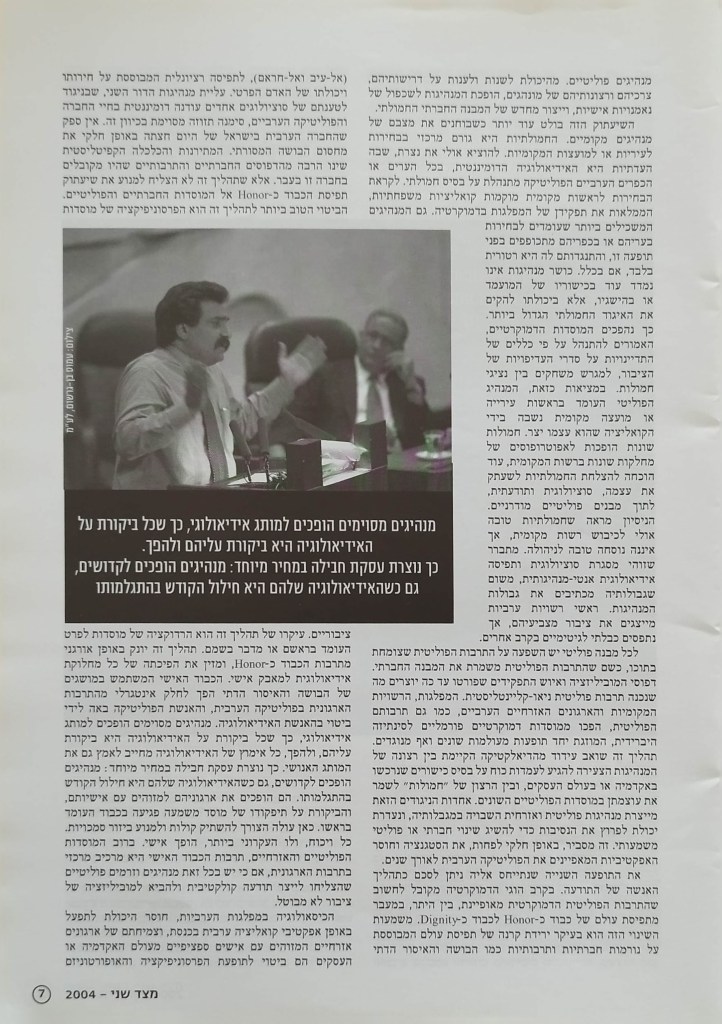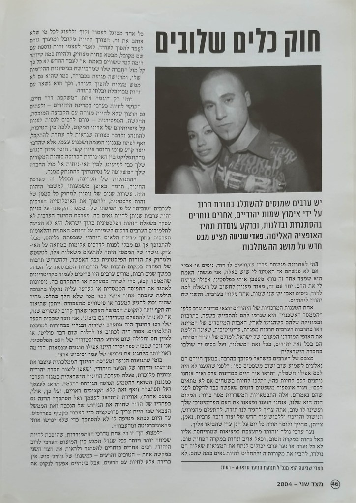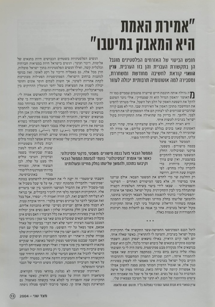 רבעון בהוצאת המרכז לאינפורמאציה אלטרנטיבית | גליון כפול 6-7 | 2004 | מו"ל: דניאל בויארין | עורכים אורחים: יסמין הלוי והלל כהן | מערכת: אביטל מוזס, שיקו בהר, יאסר עכאווי, לינא דלאשה | עיצוב גרפי: רונן אידלמן | דפוס: אל רסאלה, ירושלים