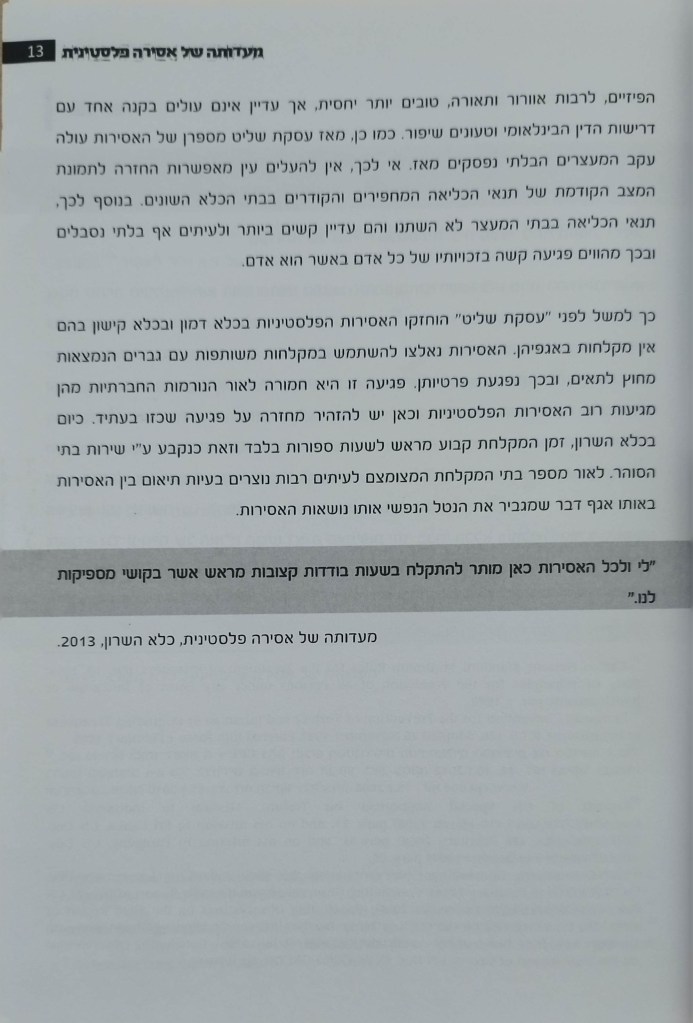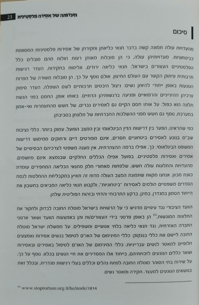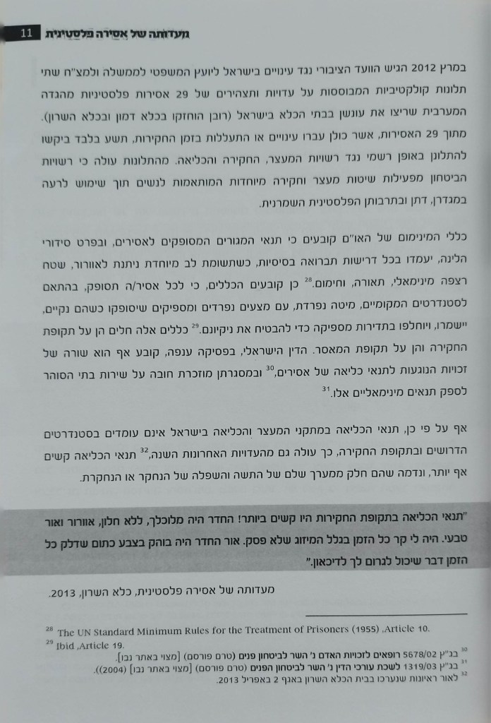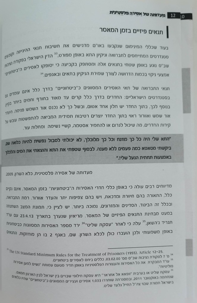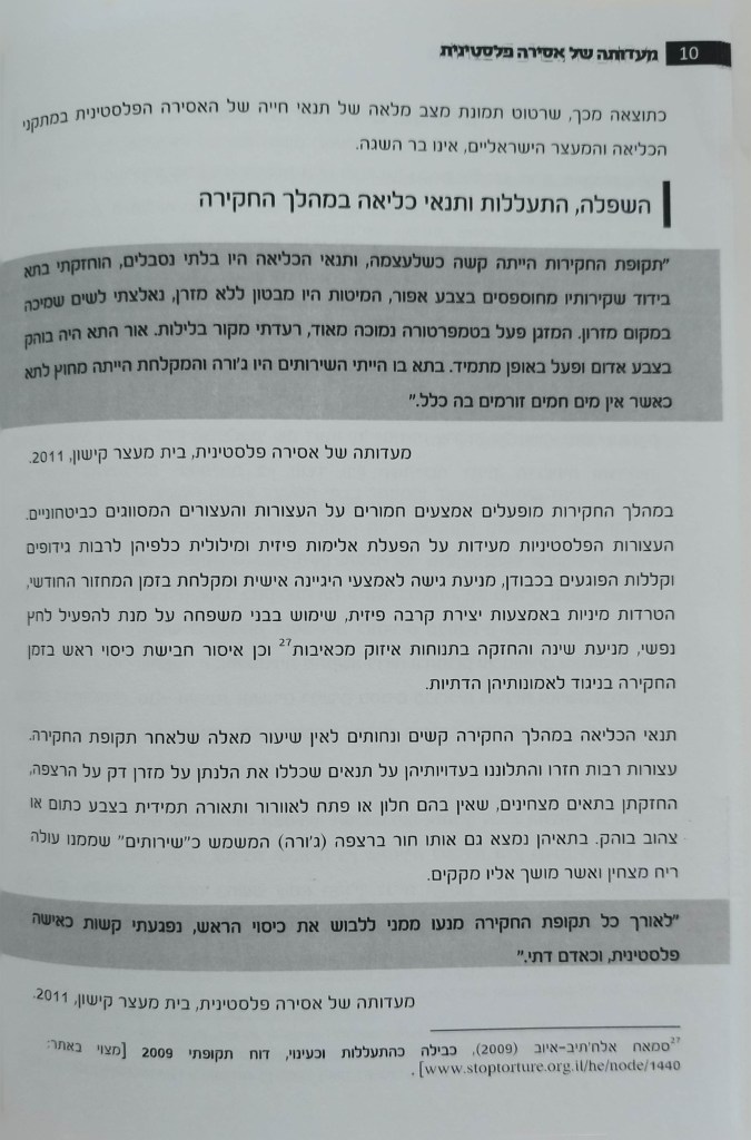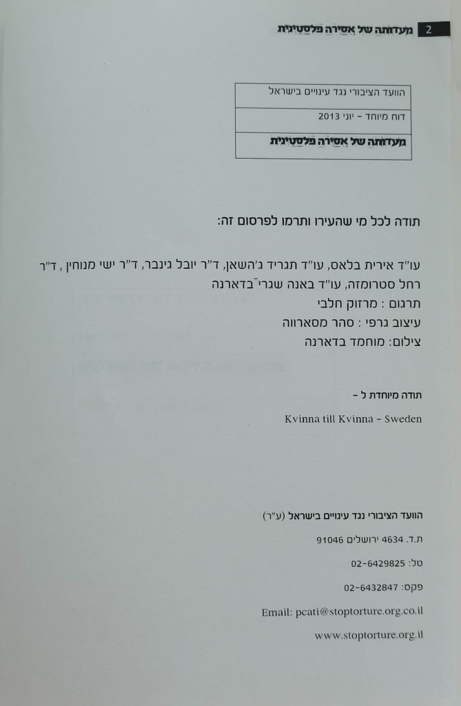 מעדותה של אסירה פלסטינית פורסם בתאריך פברואר 11, 2024 מאת erantorbiner דו"ח מיוחד | יוני 2013 | כתיבה: הדיל בדארנה | הוועד הציבורי נגד עינויים בישראל אתר הוועד נגד עינויים בישראל שתף לחיצה לשיתוף ב-X (נפתח בחלון חדש) X לחיצה לשיתוף בפייסבוק (נפתח בחלון חדש) פייסבוק אהבתי טוען... קשור