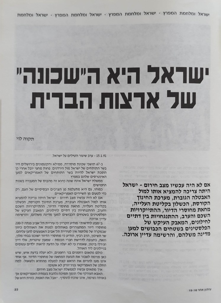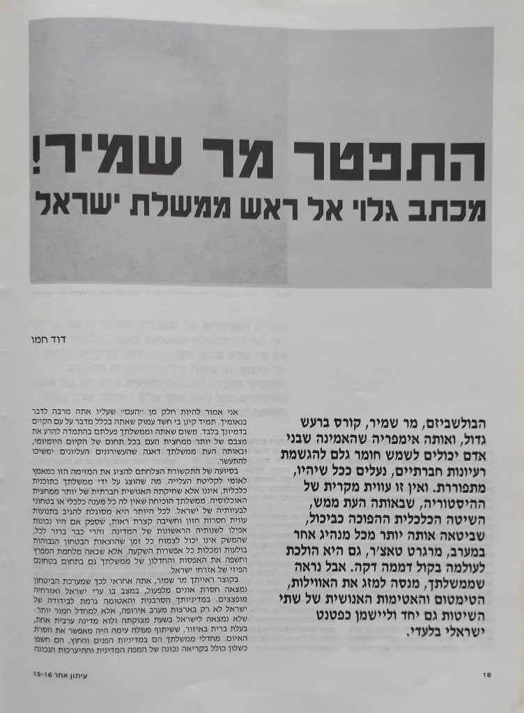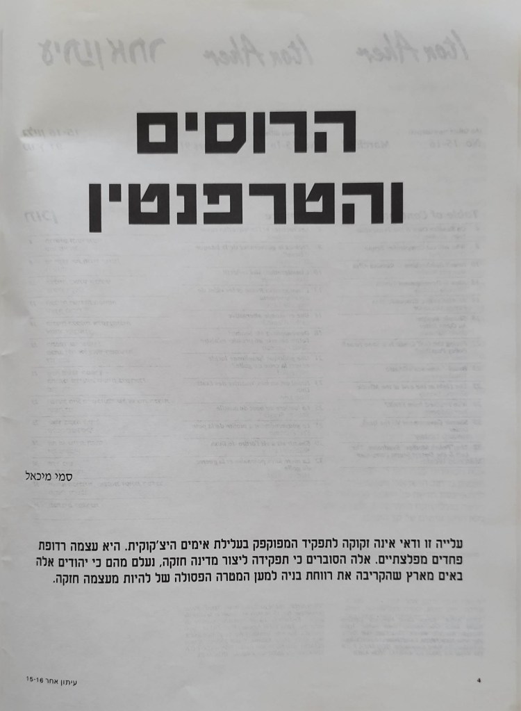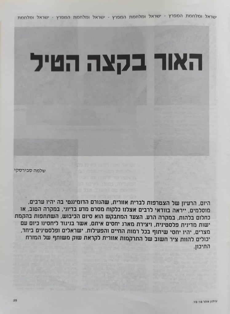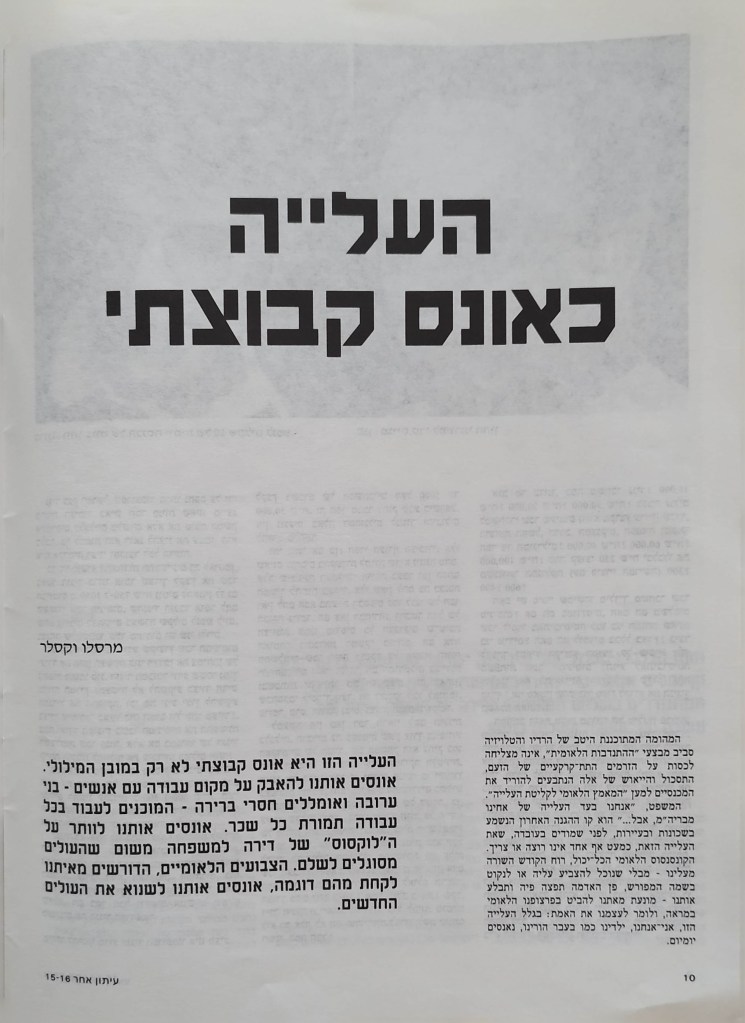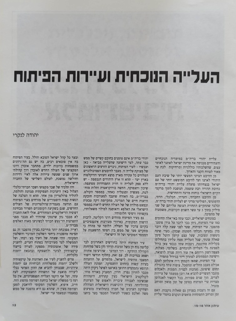 גליון 15-16 | מרץ 1991 | "חדשות יתד" עיתון אחר | עורך: דוד חמו | מערכת: יוסי דראן, קטיה גיבל-אזולאי, חיים הנגבי, מרסלו וקסלר, תקוה לוי, צאיר עמור, מזל פחימה, יעל צדוק, יוסף שילוח, נסים קלדרון