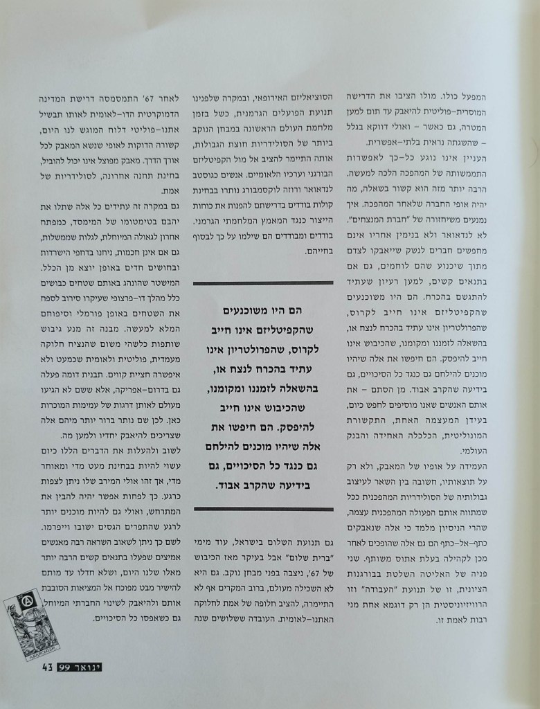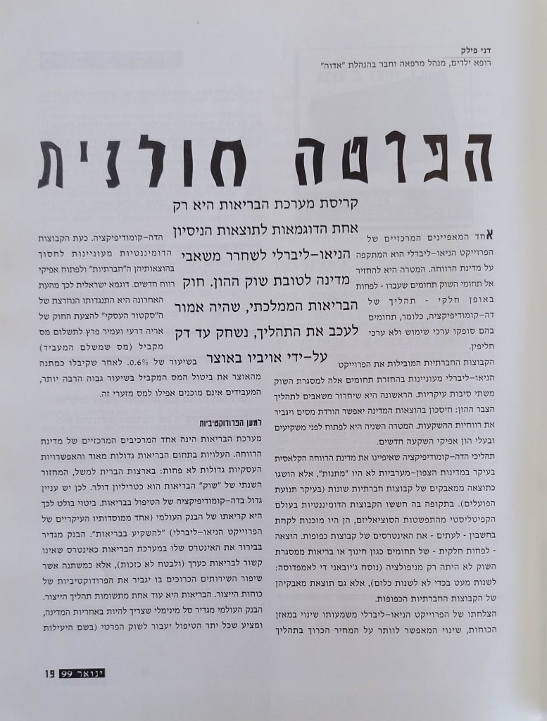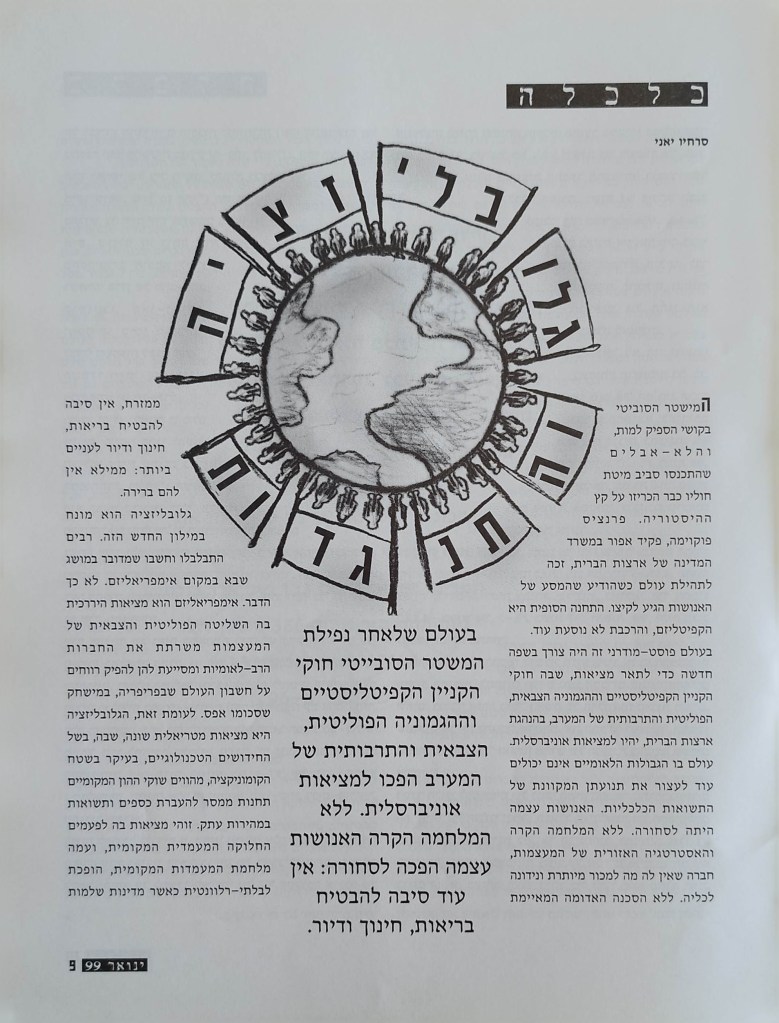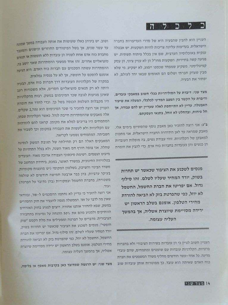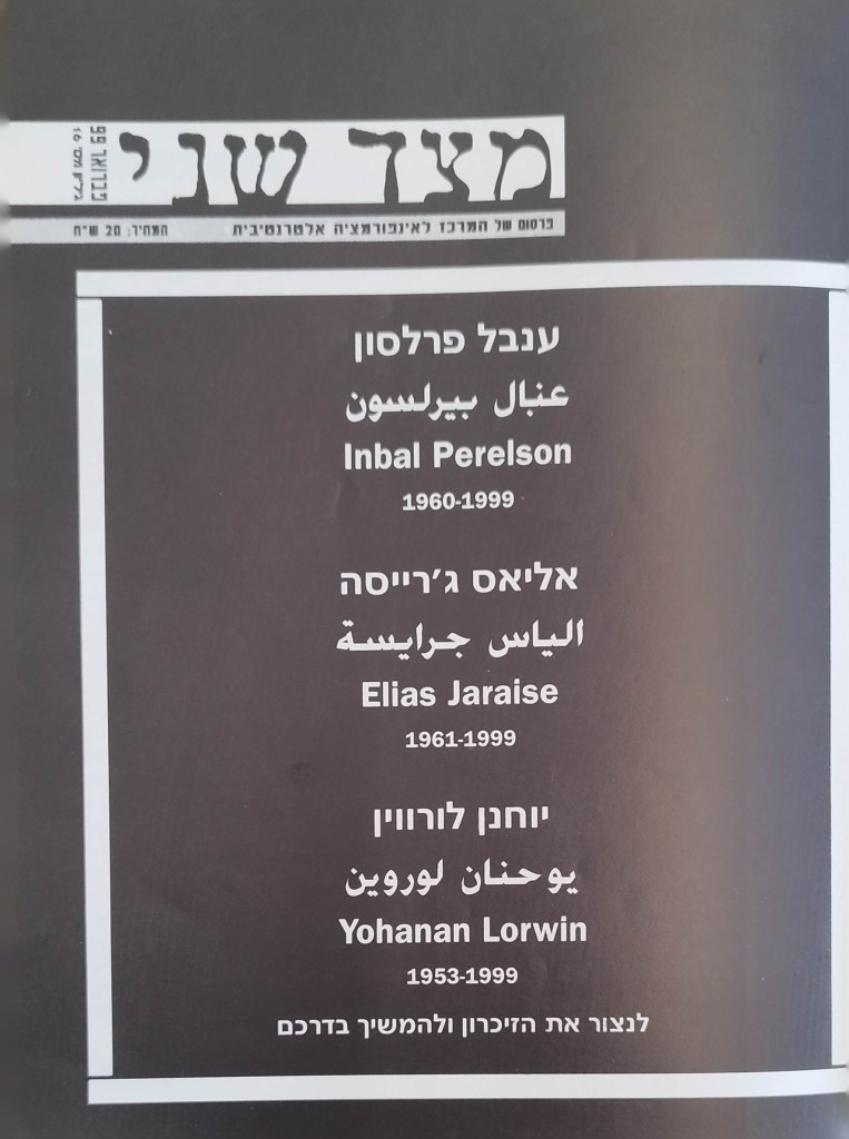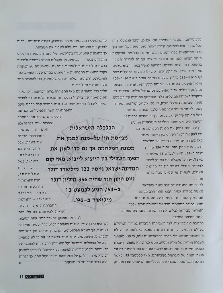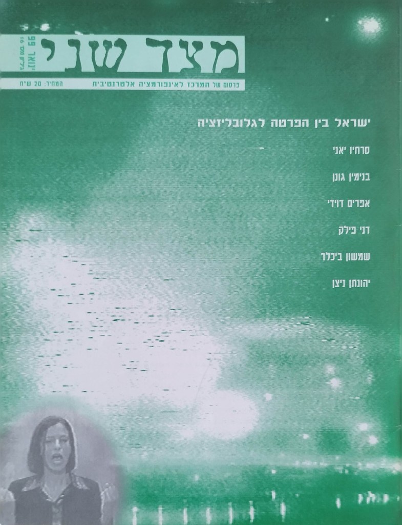 מצד שני | ישראל בין הפרטה לגלובליזציה | פרסום של המרכז לאינפורמציה אלטרנטיבית | ינואר 1999 | גליון מס 16 | מו"ל: דניאל בויארין | עריכה: ענבל פרלסון | עריכה גרפית: אריאל מיודסר | עריכה לשונית: רן הכהן | תרגומים מערבית: נוואף עתאמנה | צוות הפקה: סרחיו יאני, דפנה ברעם, מיכאל ורשבסקי