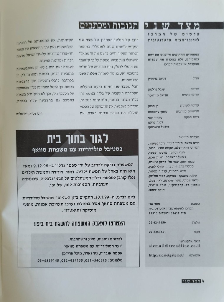 פרסום של המרכז לאינפורמציה אלטרנטיבית | פברואר 1999 | גליון מס' 16