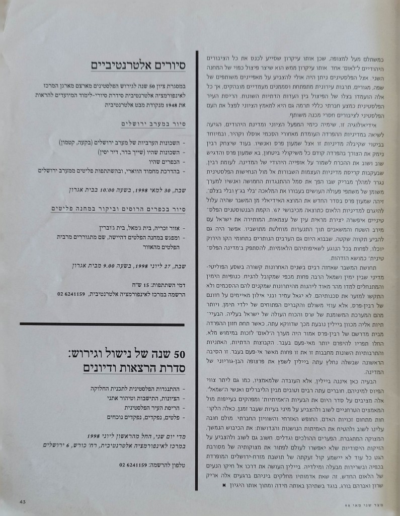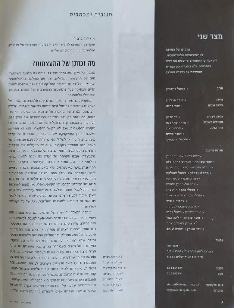 המרכז לאינפורמציה אלטרנטיבית | מו"ל: דניאל בויארין | עריכה: ענבל פרלסון | עריכה גרפית: עפר כהנא | עריכה לשונית: רן הכהן | תרגומים מערבית: נוואף עתאמנה | צוות הפקה: סרחיו יאני, דפנה ברעם, מיכאל ורשבסקי