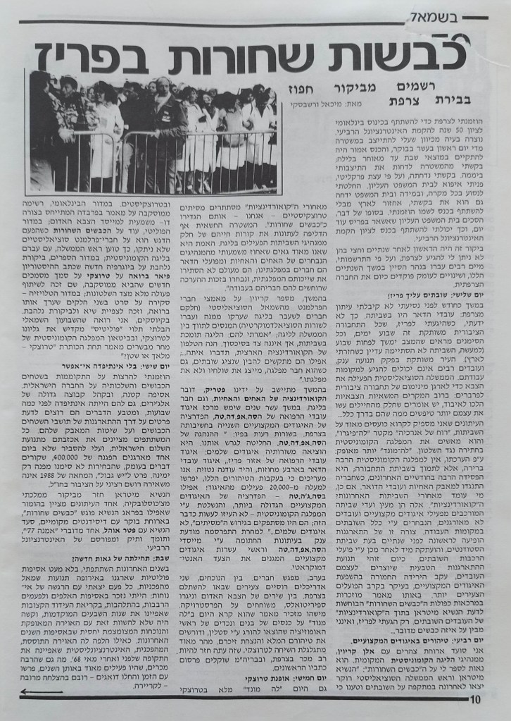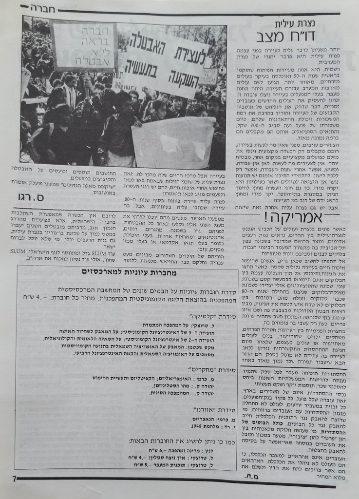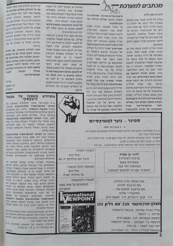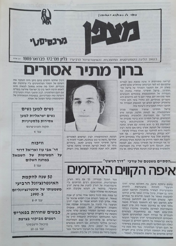 בטאון הליגה הקומוניסטית המהפכנית (האינטרנציונל הרביעי) | גליון 169 | אוגוסט 1988 | מו"ל ועורך אחראי: מיכאל ורשבסקי | עורך: מנשה אלימלך