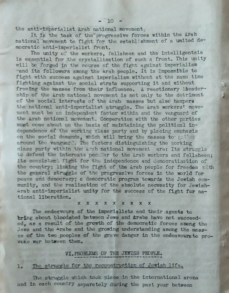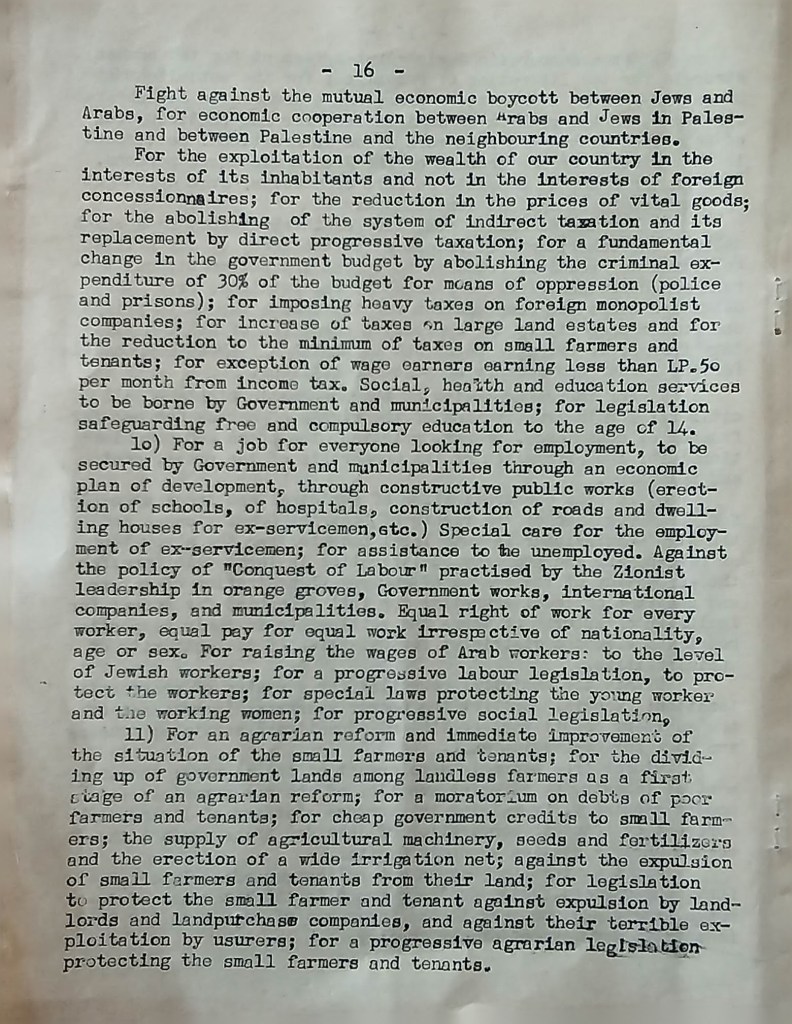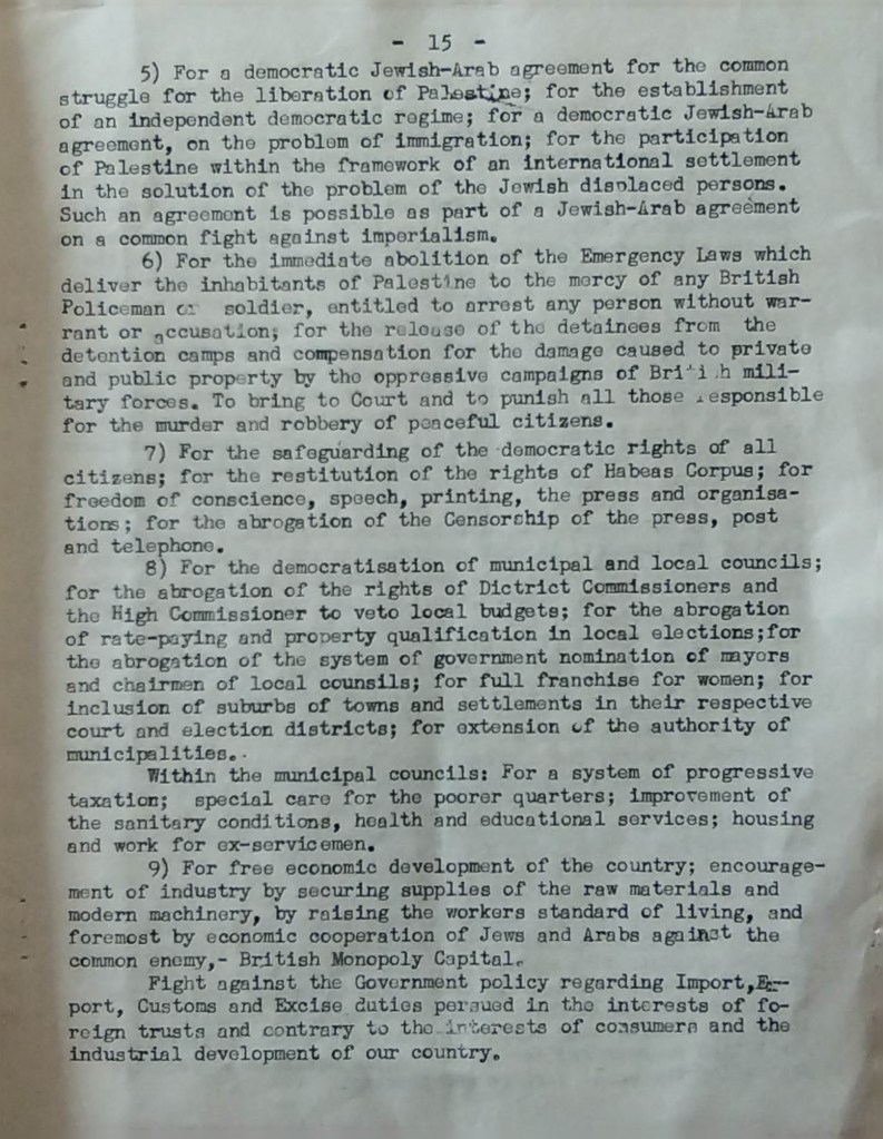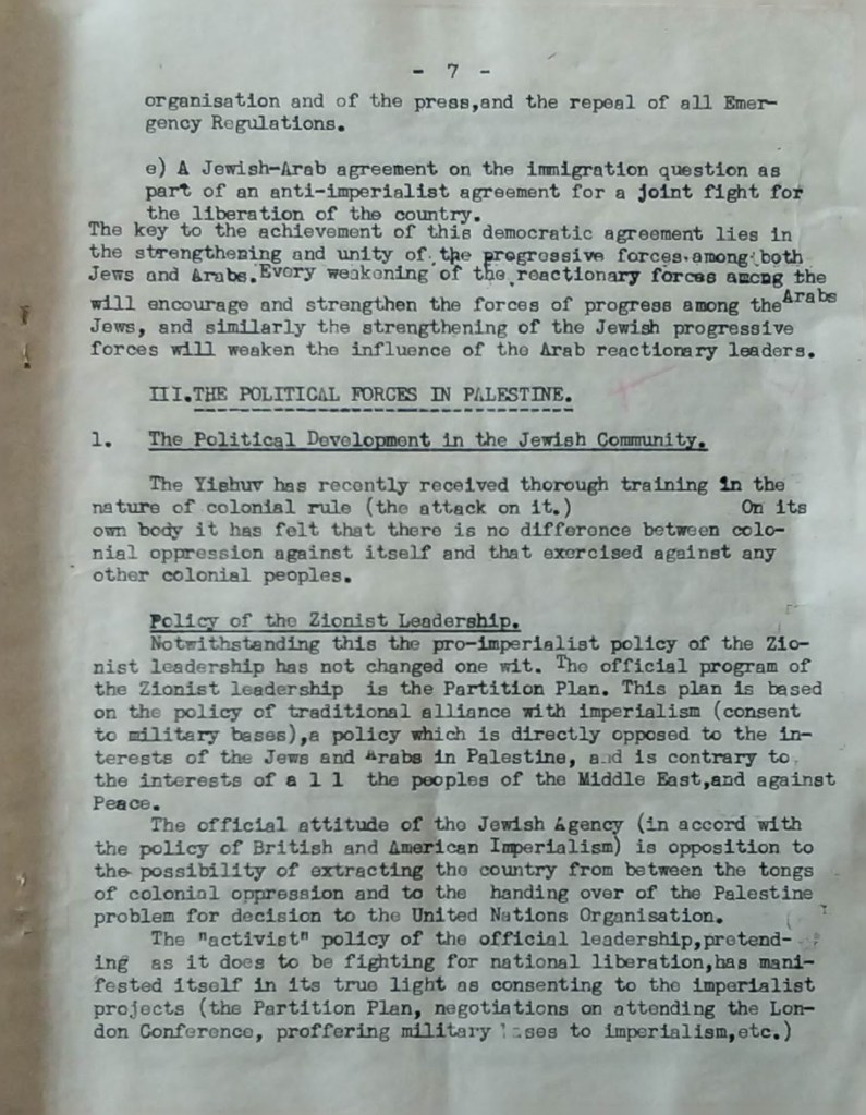 RESOLUTIONS פורסם בתאריך פברואר 19, 2024 מאת erantorbiner adopted at the Tenth Conference of the COMMUNIST PARTY OF PALESTINE | 29.11.1946 – 2.12.1946 שתף לחיצה לשיתוף ב-X (נפתח בחלון חדש) X לחיצה לשיתוף בפייסבוק (נפתח בחלון חדש) פייסבוק אהבתי טוען... קשור