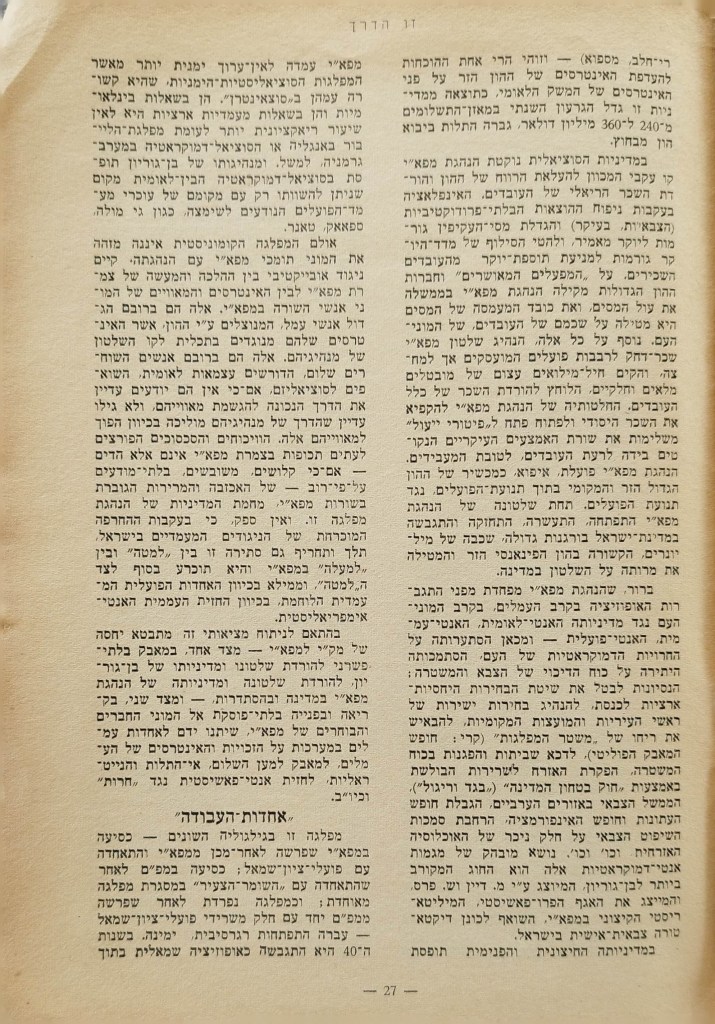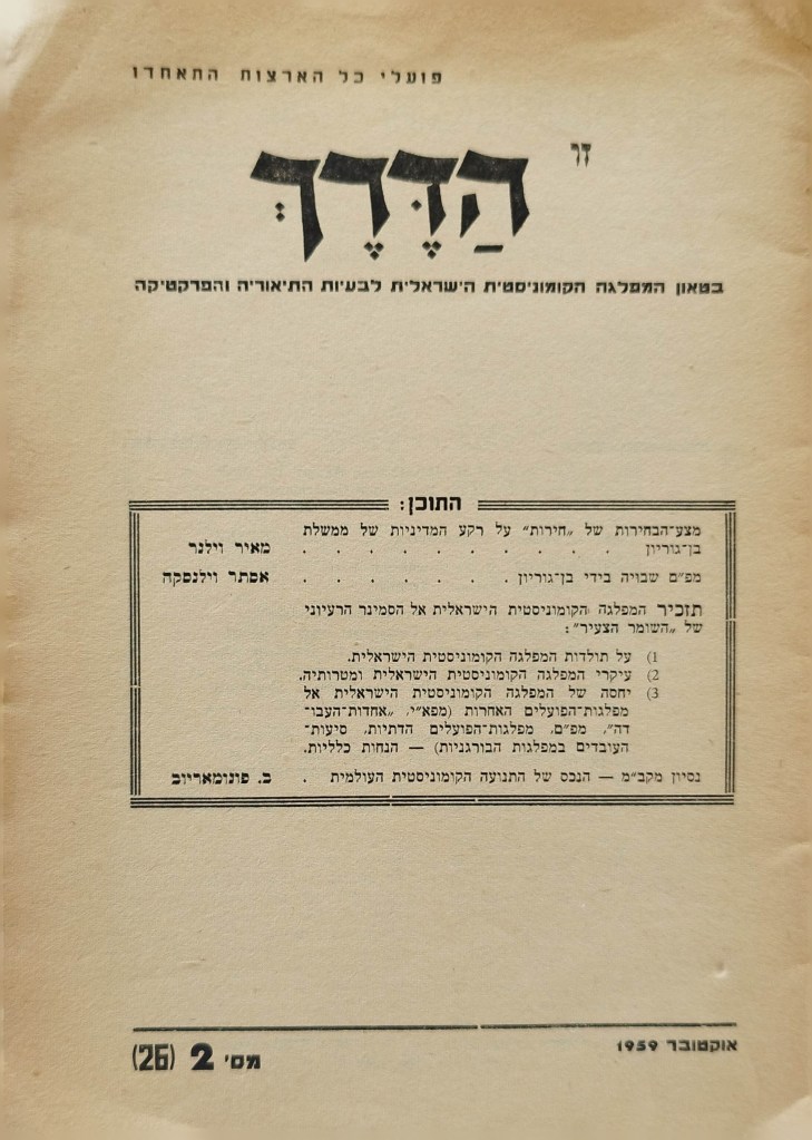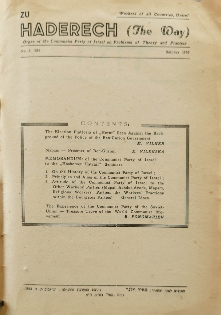 זו הדרך | פועלי כל הארצות התאחדו! פורסם בתאריך מרץ 2, 2024 מאת erantorbiner בטאון המפלגה הקומוניסטית הישראלית לבעיות התאוריה והפרקטיקה | המוציא לאור והעורך: מאיר וילנר | אוקטובר 1954 | מספר 2 (26) שתף לחיצה לשיתוף ב-X (נפתח בחלון חדש) X לחיצה לשיתוף בפייסבוק (נפתח בחלון חדש) פייסבוק אהבתי טוען... קשור