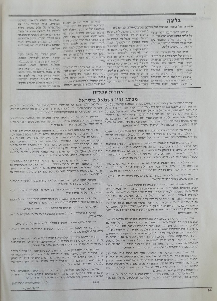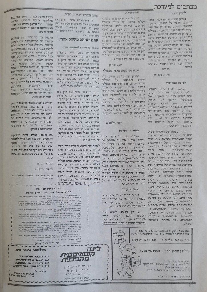 טאון הליגה הקומוניסטית המהפכנית (האינטרנציונל הרביעי) | גליון 166 | פברואר 1988 | מו"ל ועורך אחראי: מיכאל ורשבסקי | עורך: מנשה אלימלך