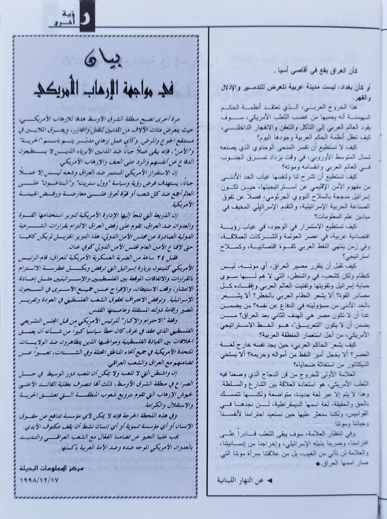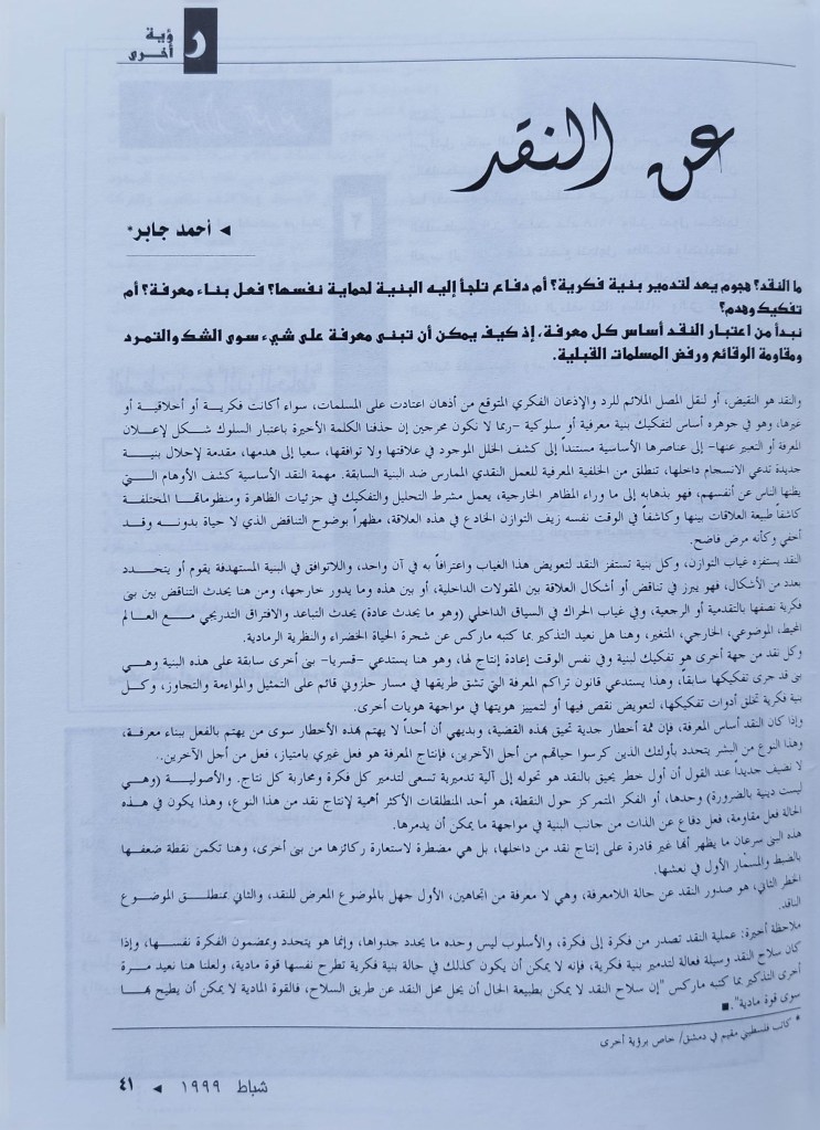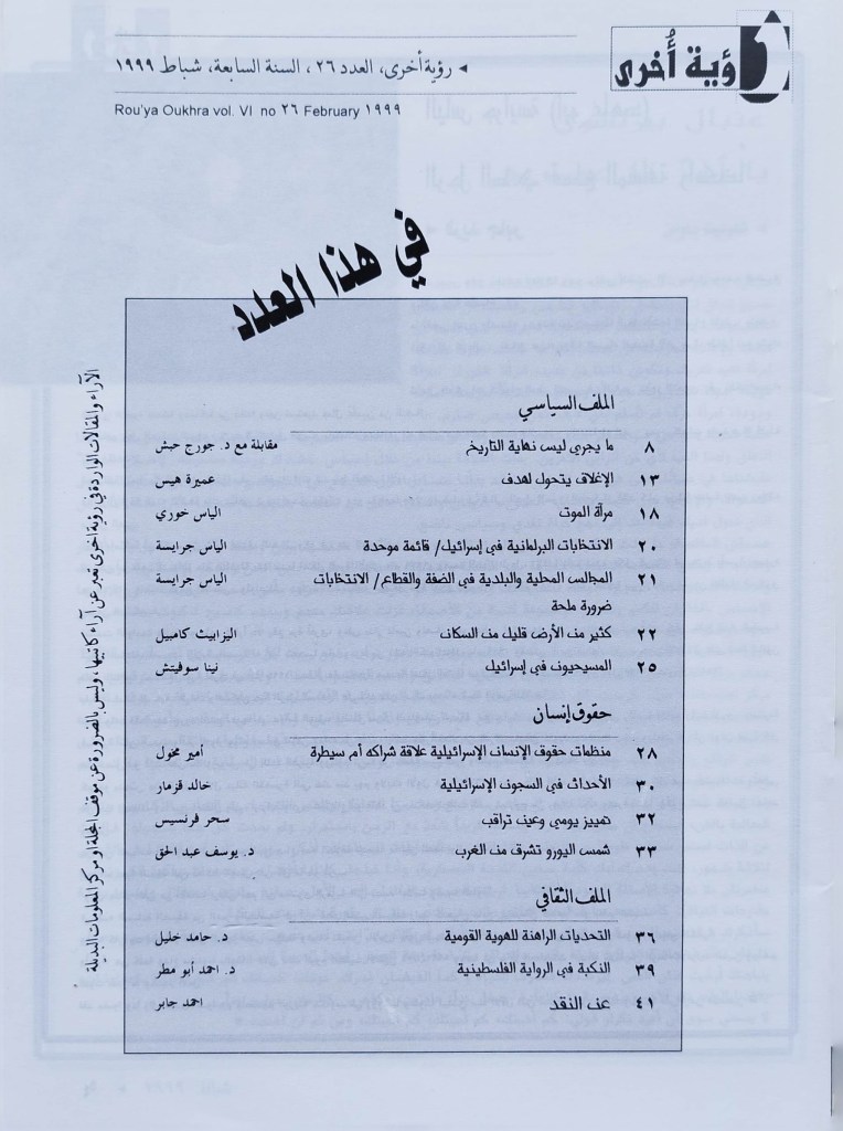روىة اخرى פורסם בתאריך מרץ 13, 2024 מאת erantorbiner Rou'ya Oukhra | vol. VI | No. 26 | February 1999 שתף לחיצה לשיתוף ב-X (נפתח בחלון חדש) X לחיצה לשיתוף בפייסבוק (נפתח בחלון חדש) פייסבוק אהבתי טוען... קשור