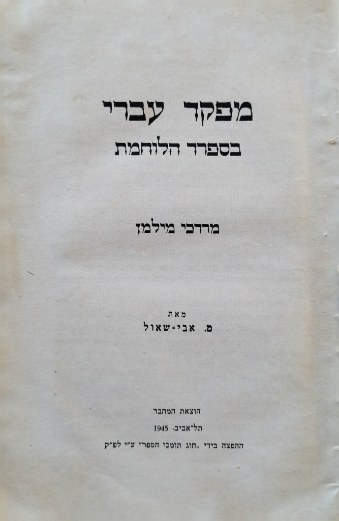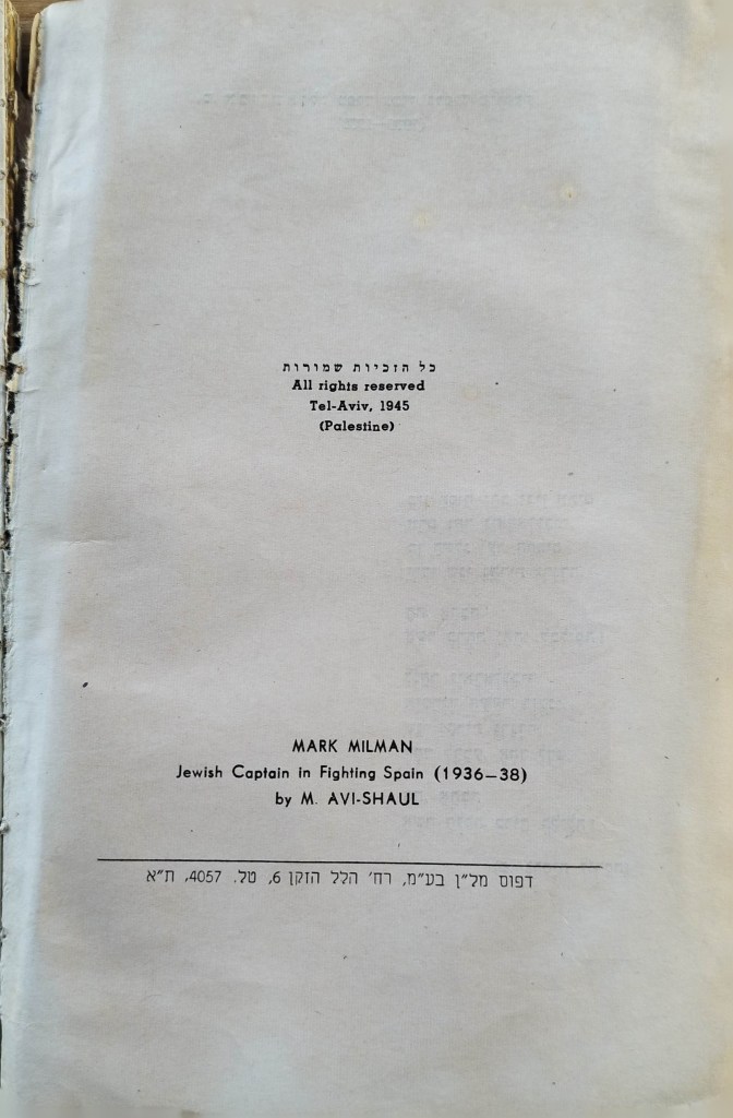 מפקד עברי בספרד הלוחמת | קפיטן מרדכי מילמן |מאת: מרדכי אבי-שאול פורסם בתאריך מרץ 23, 2024אוקטובר 19, 2024 מאת erantorbiner MARK MILMAN | Jewish Captain in Fighting Spain (1936-1938) | by MORDECHAY AVI-SHAUL TEL AVIV, 1945 (PALESTINE) שתף לחיצה לשיתוף ב-X (נפתח בחלון חדש) X לחיצה לשיתוף בפייסבוק (נפתח בחלון חדש) פייסבוק אהבתי טוען... קשור