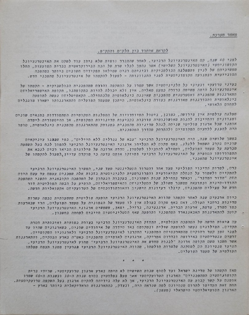 רבעון תיאורטי של הליגה הקומוניסטית המהפכנית וקבוצת 'הניצוץ' | גליון מס' 9 | חורף 1978