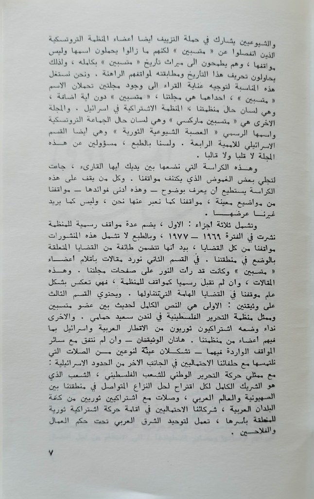 المنظمة الاشتراكية في اسرائيل – متسبين | أدار ١٩٧٨