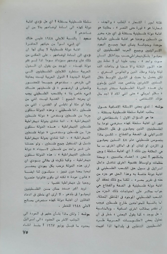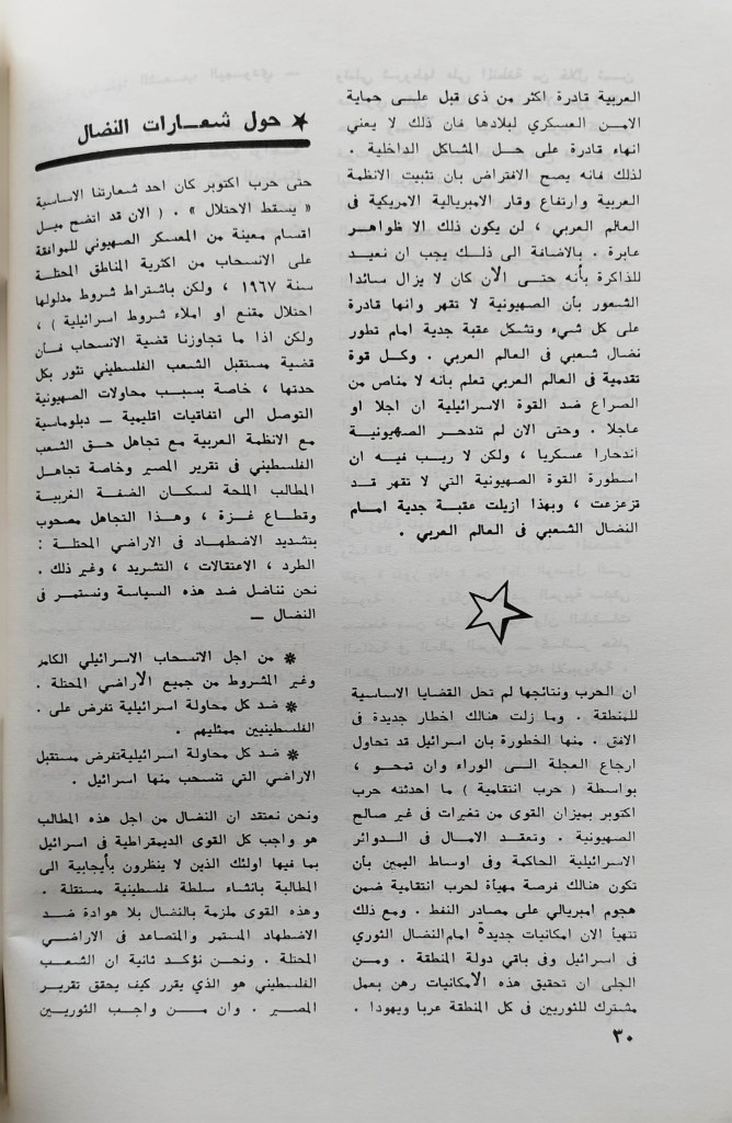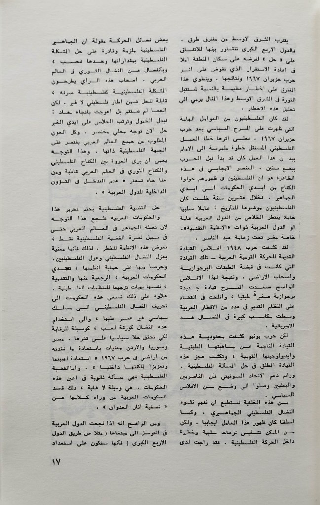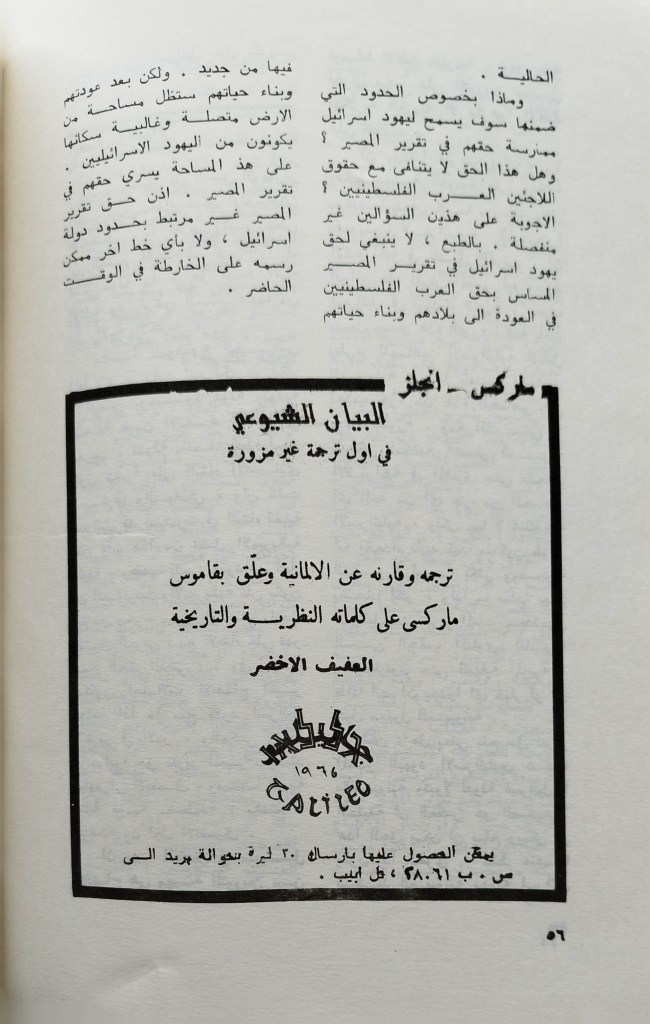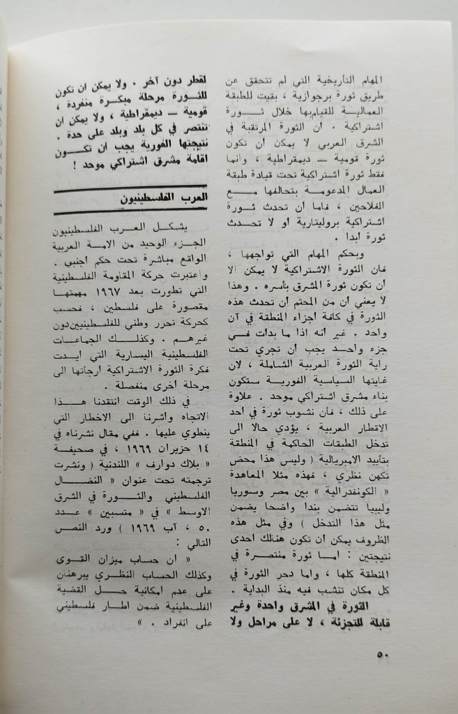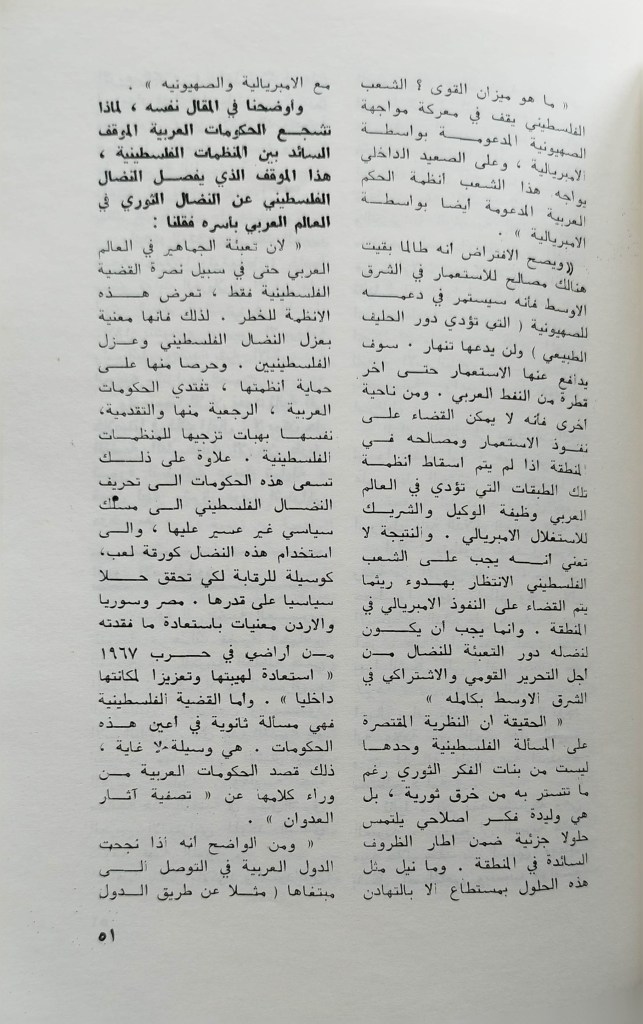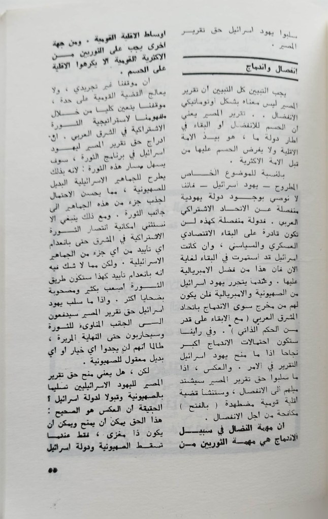 متسبين أيّدت الحقوق القومية والانسانية للفلسطينيين ونادت بحل جميع المشاكل الاقليمية سواء كانت قومية ام اجتماعية وذلك عن طريق النضال من أجل اسقاط جميع الانظمة في المنطقة واقامة مشرق عربي موحد واشتراكي.
