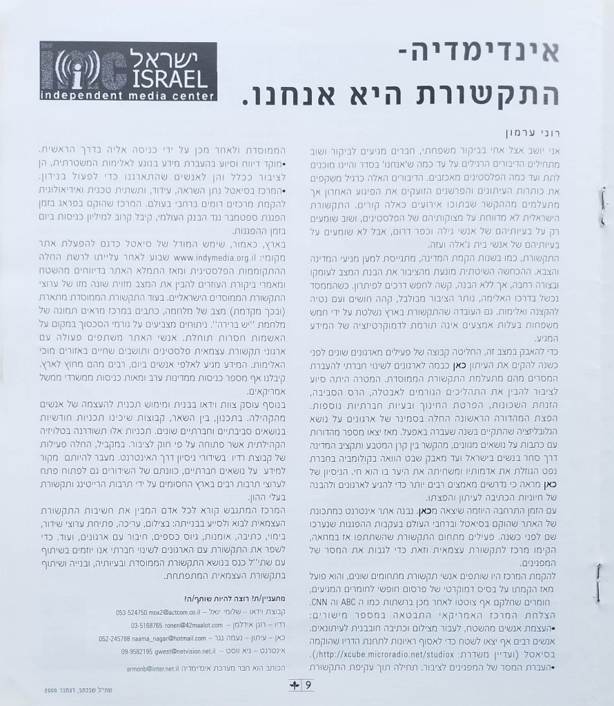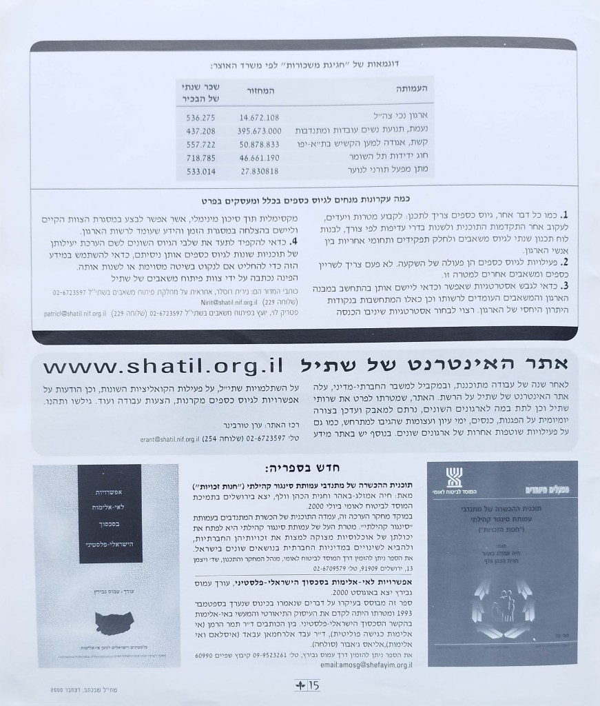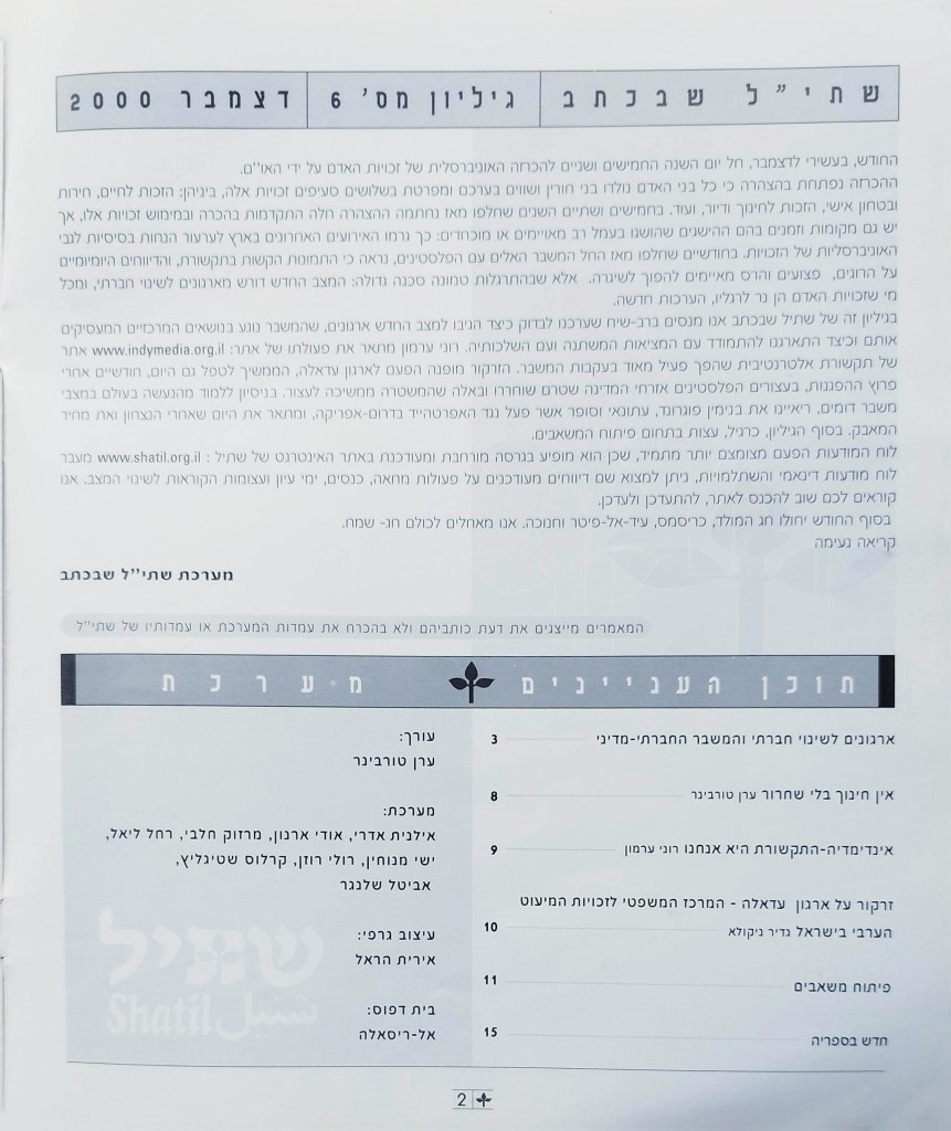 יוצא לאור ע"י שתי"ל – שירות תמיכה וייעוץ לארגונים לשינוי חברתי מיסודה של הקרן החדשה לישראל | עורך: ערן טורבינר | מערכת: אילנית אדרי, אודי ארנון, מרזוק חלבי, רחל ליאל, ישי מנוחין, רולי רוזן, קרלוס שטיגליץ, אביטל שלנגר | עיצוב גרפי: אירית הראל | עריכה לשונית: מיכל הלפרן | בית דפוס: אל-ריסאלה