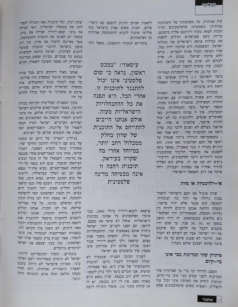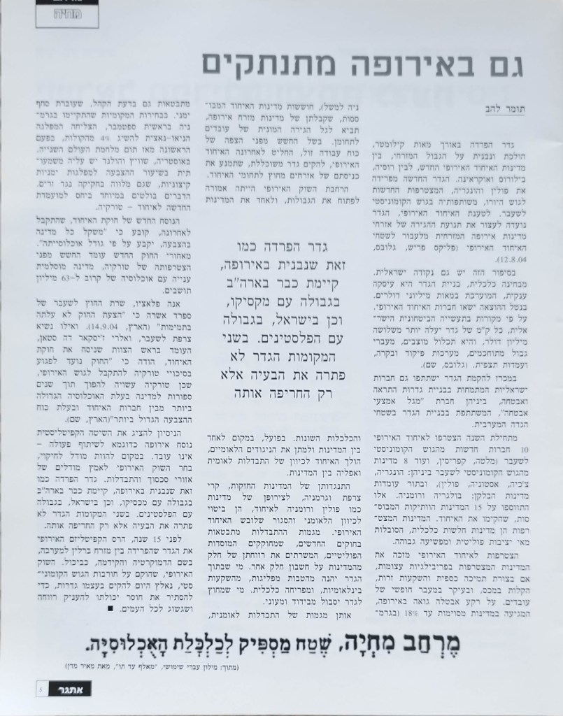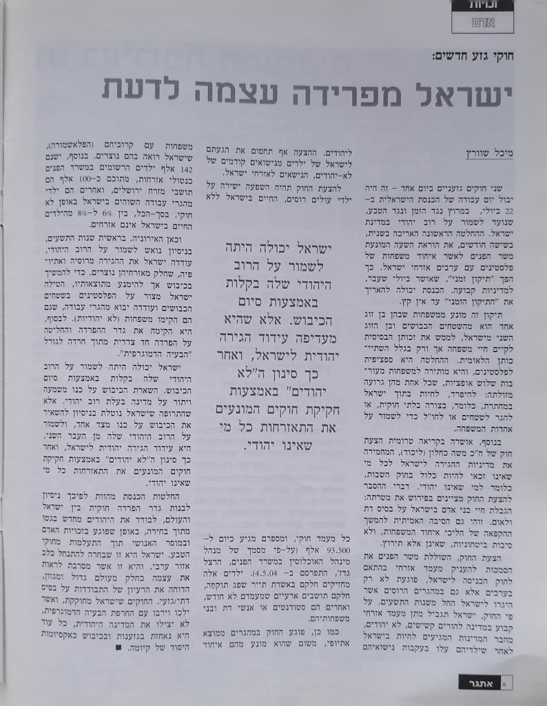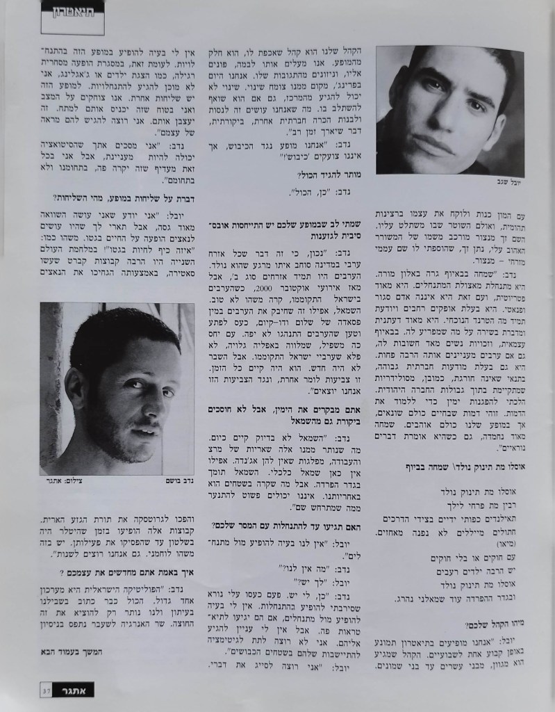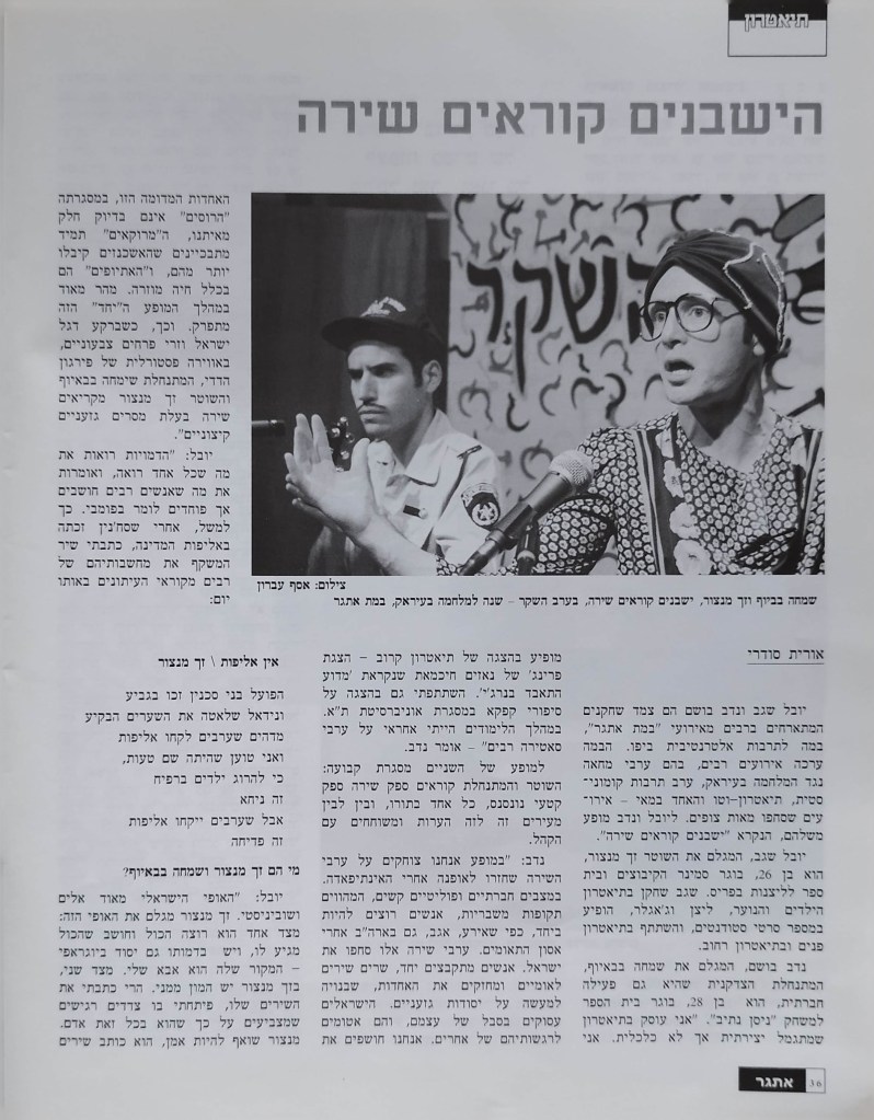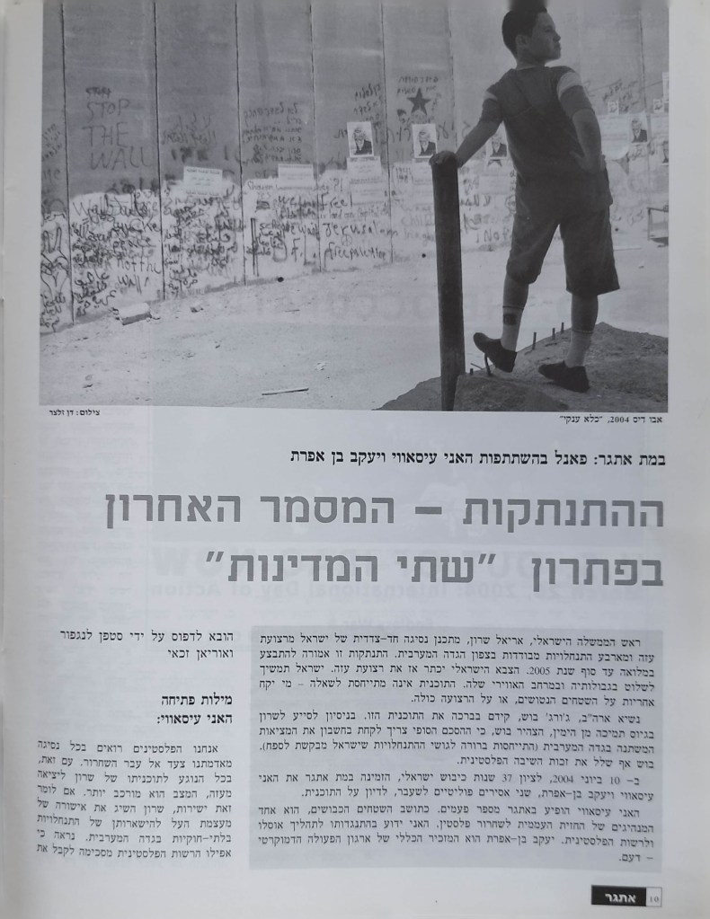 מגזין פוליטי תרבותי | מו"ל שמעון צבר | עורכת ראשית: ליז ליבק | עורך בפועל: ניר נאדר | חברי מערכת: אסמא אגברייה, אוריאן זכאי, יונתן בן אפרת, דני בן שמחון, עופר יוליוס, הדס להב, תומר להב, מיכל פרידמן, אורית סודרי, יעל שביט, עידו תבורי, רותי בן אפרת | צילום שער קדמי: אלדד רפאלי | איור שער אחורי: אורי נתן | גליון מספר 14 | ספטמבר 2004